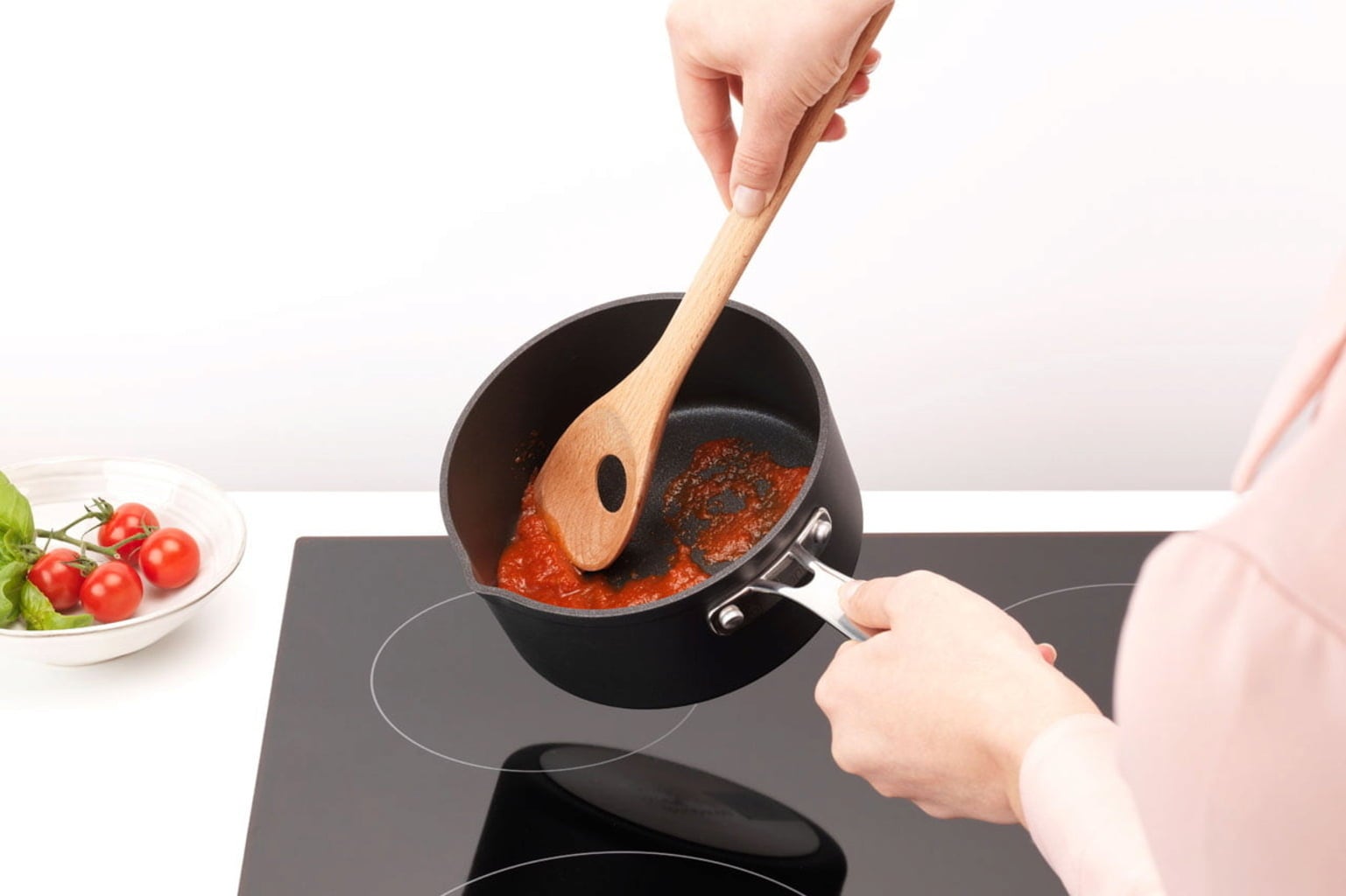 Deze lepel past in elke hoek van je kookgerei. Hij is ideaal om gemakkelijk sauzen en andere ingrediënten uit potten en pannen te scheppen, zonder krassen achter te laten.