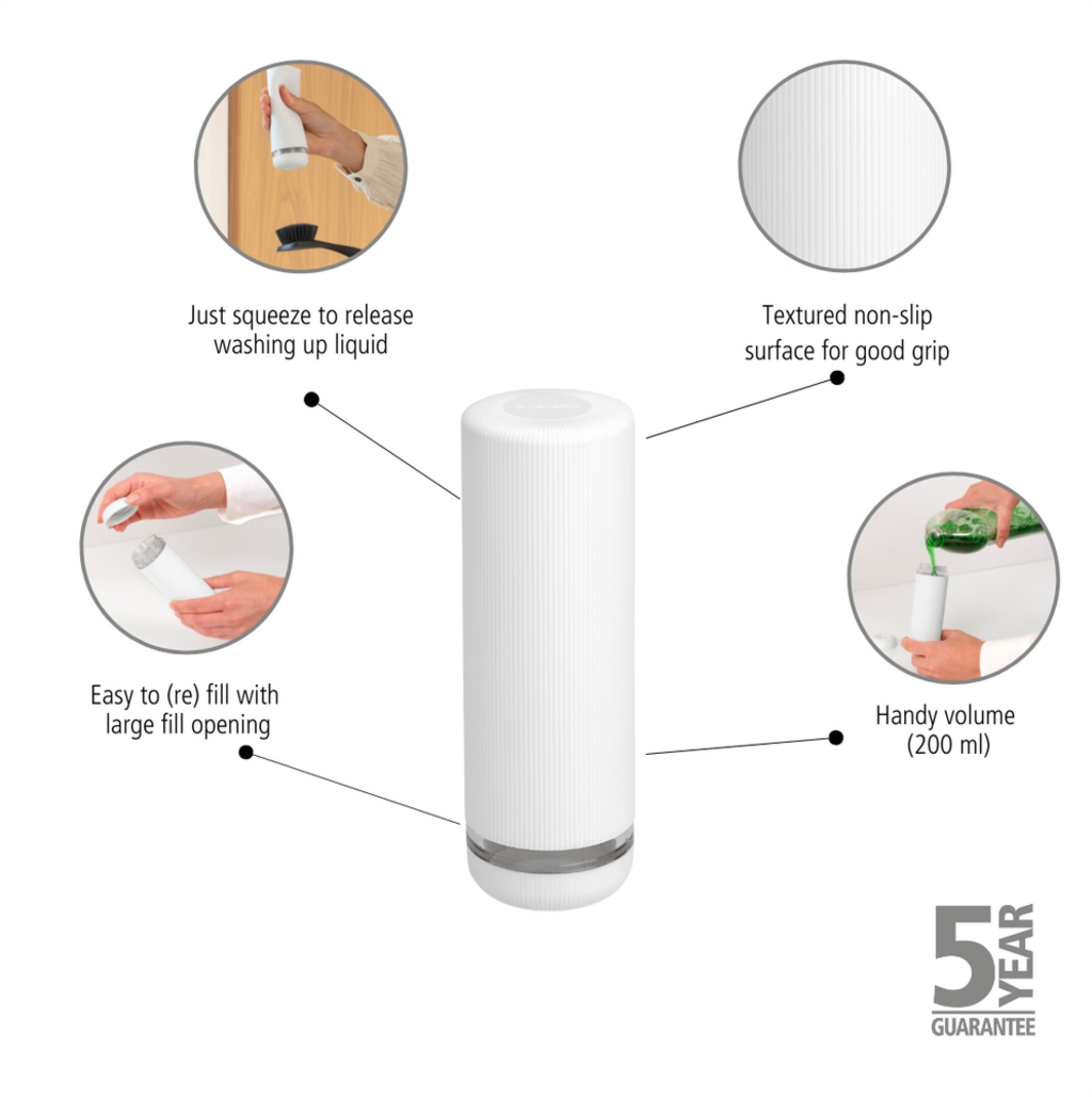 Een onaantrekkelijke plastic verpakking maakt geen kans tegen deze stijlvolle zeepdispenser met druksysteem. Het product ziet er niet alleen geweldig uit, maar heeft ook een slim ontwerp.