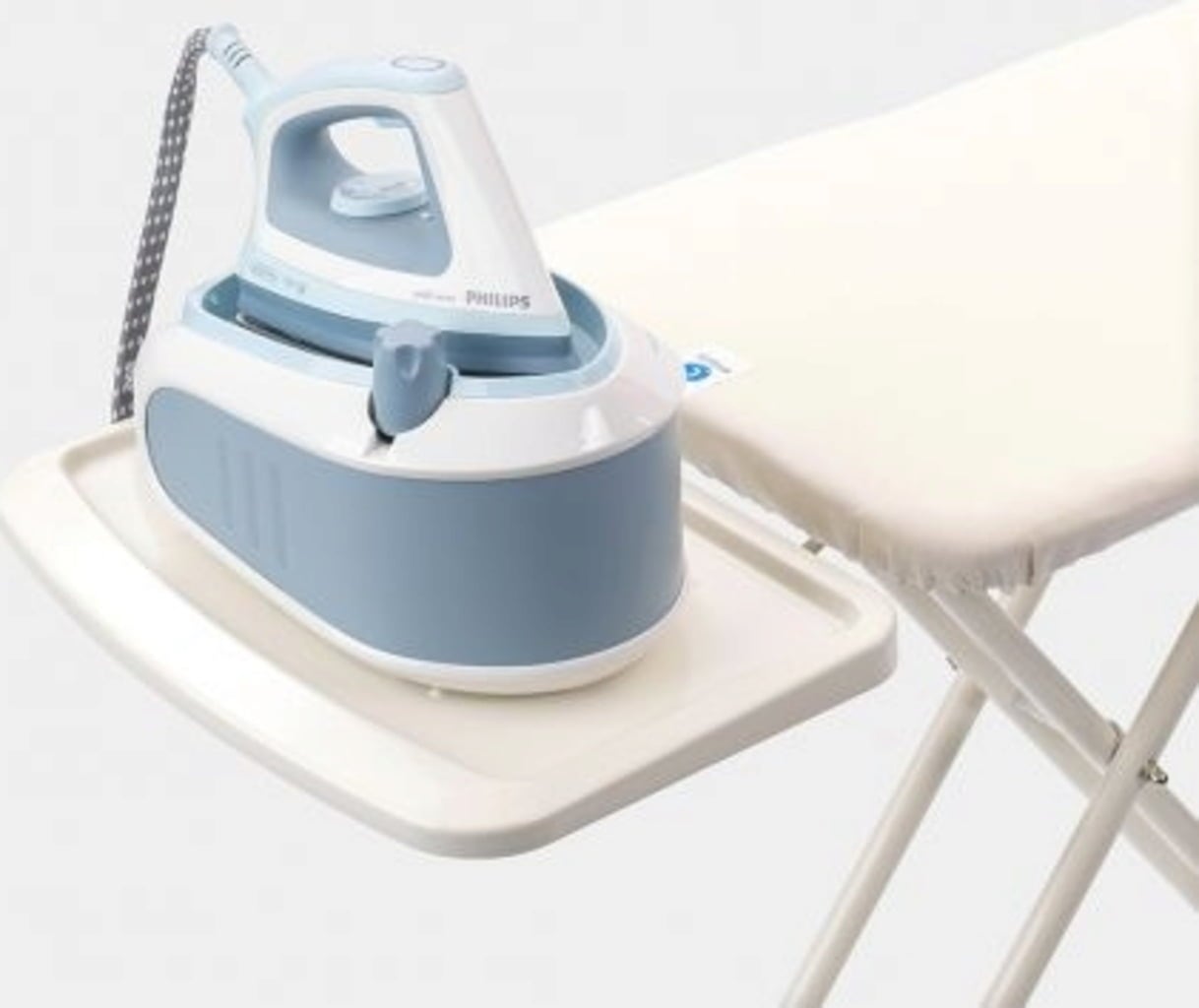 Extra brede strijkplank met een stevige plank voor stoomunits. De extra breedte biedt meer comfort en de plank is ook in hoogte verstelbaar en kan snel en gemakkelijk worden ingeklapt. Beschermkapjes op de poten zorgen voor antislip en de overtrek is gemaakt van 100% katoen met een schuimlaag.