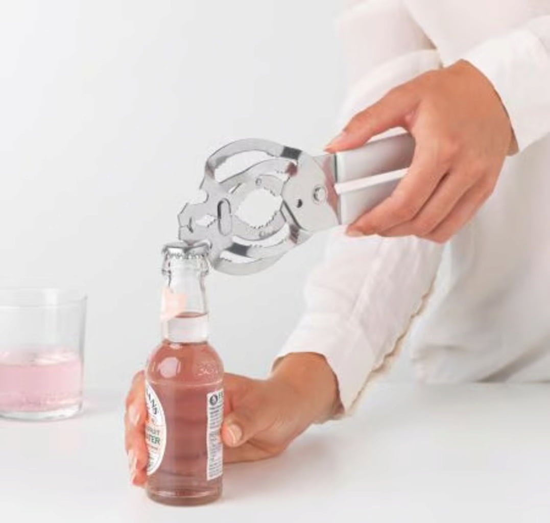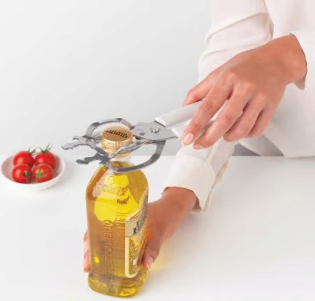 Fles, blik of pot - deze praktische opener kan het allemaal. Dankzij de 4-in-1 functie ben je uitgerust voor elke situatie. Hij ligt lekker in de hand, bespaart tijd en is in een handomdraai weer schoon. Voor iedereen die van ongecompliceerd houdt.