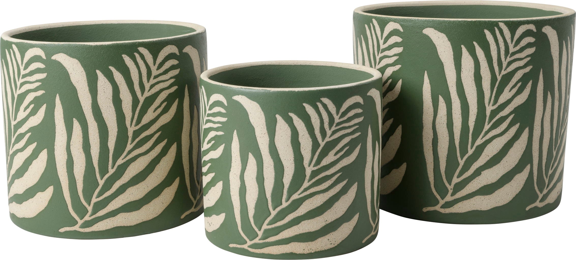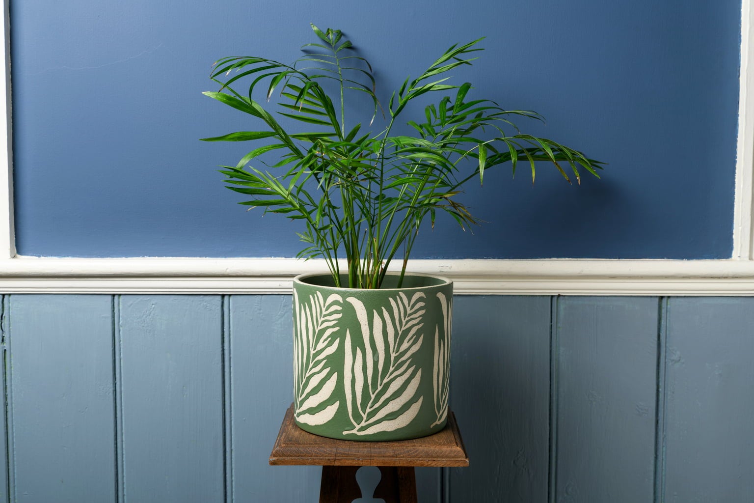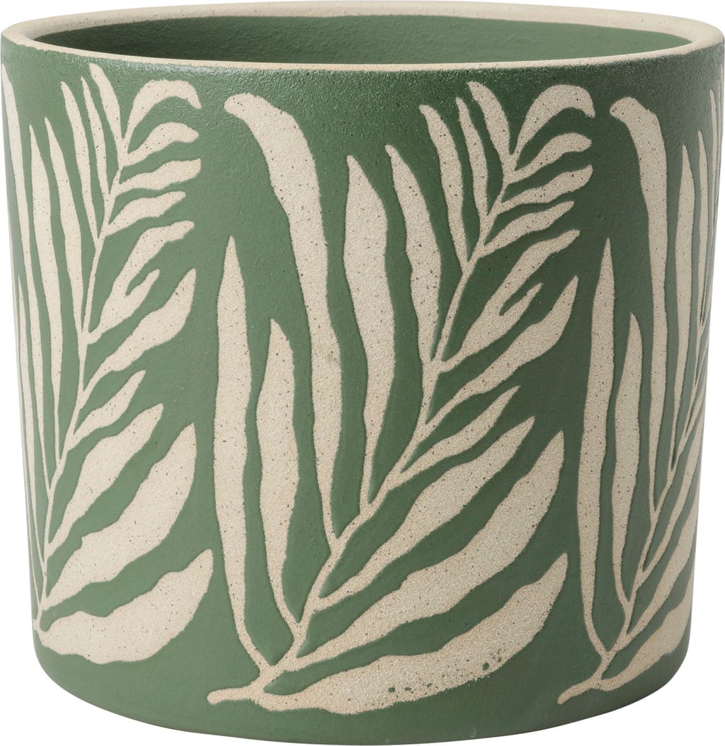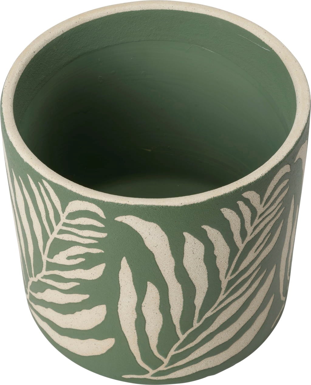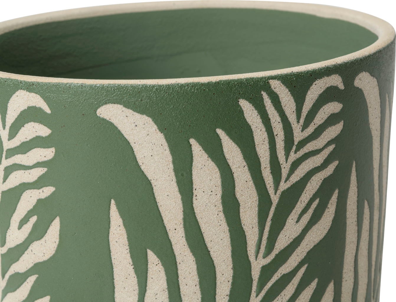 Breng frisse elegantie in huis met deze stijlvolle binnenpot van aardewerk. Het licht gestructureerde oppervlak en het matte glazuur in een zachtgroene kleur laten het ongeglazuurde bladmotief mooi uitkomen. Een perfect samenspel van kleur, textuur en design.