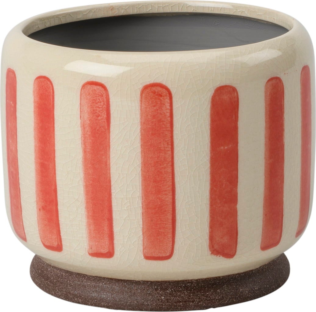 Geef je huis een frisse, moderne uitstraling met de stijlvolle bloempot "Collector" van aardewerk. De verfijnde crackle-glazuur in combinatie met de opvallende strepen maakt deze pot tot een echte blikvanger, die zowel kleur als textuur aan je ruimtes toevoegt.