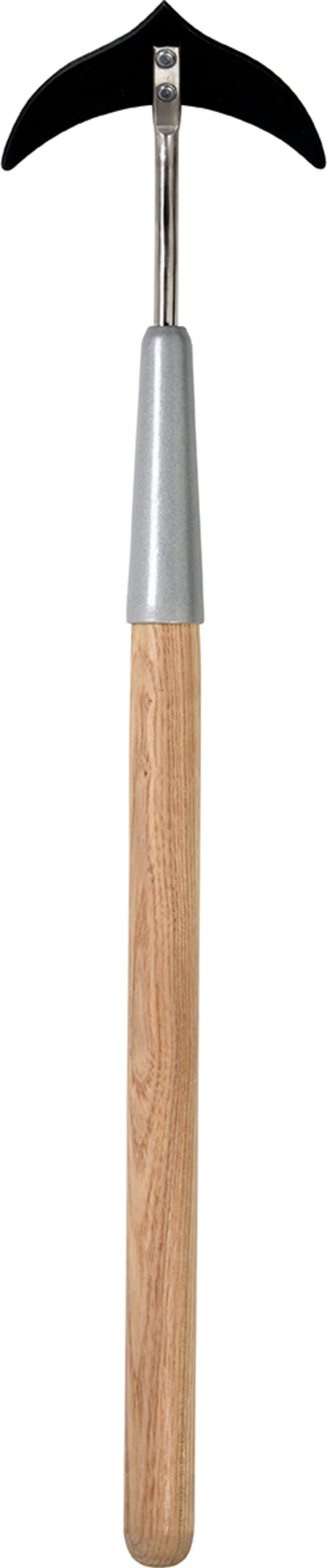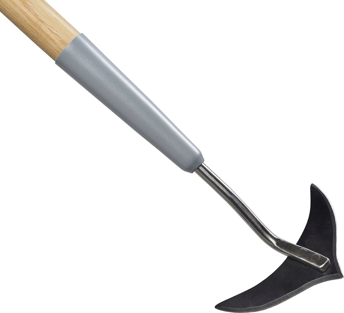 Een bijzonder praktische hulp voor het moeiteloos wieden van vervelend onkruid. De speciaal gevormde kop glijdt stevig door de grond en snijdt het onkruid bij het duwen en trekken. Tegelijkertijd wordt het oppervlak van de grond losgemaakt, waardoor het niet uitdroogt. De kop is gemaakt van gehard koolstofstaal en kan gemakkelijk worden geslepen. De kleine kop en het minimale gewicht maken van dit gereedschap je beste vriend in de strijd tegen onkruid! De steel is gemaakt van duurzaam roestvrij staal en het handvat is gemaakt van hoogwaardig FSC® essenhout. Bijzonder praktisch: het lange handvat is gemakkelijk op je rug - waardoor tuinieren nog leuker wordt!
