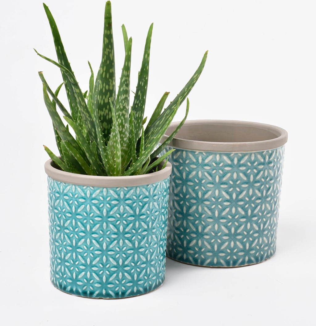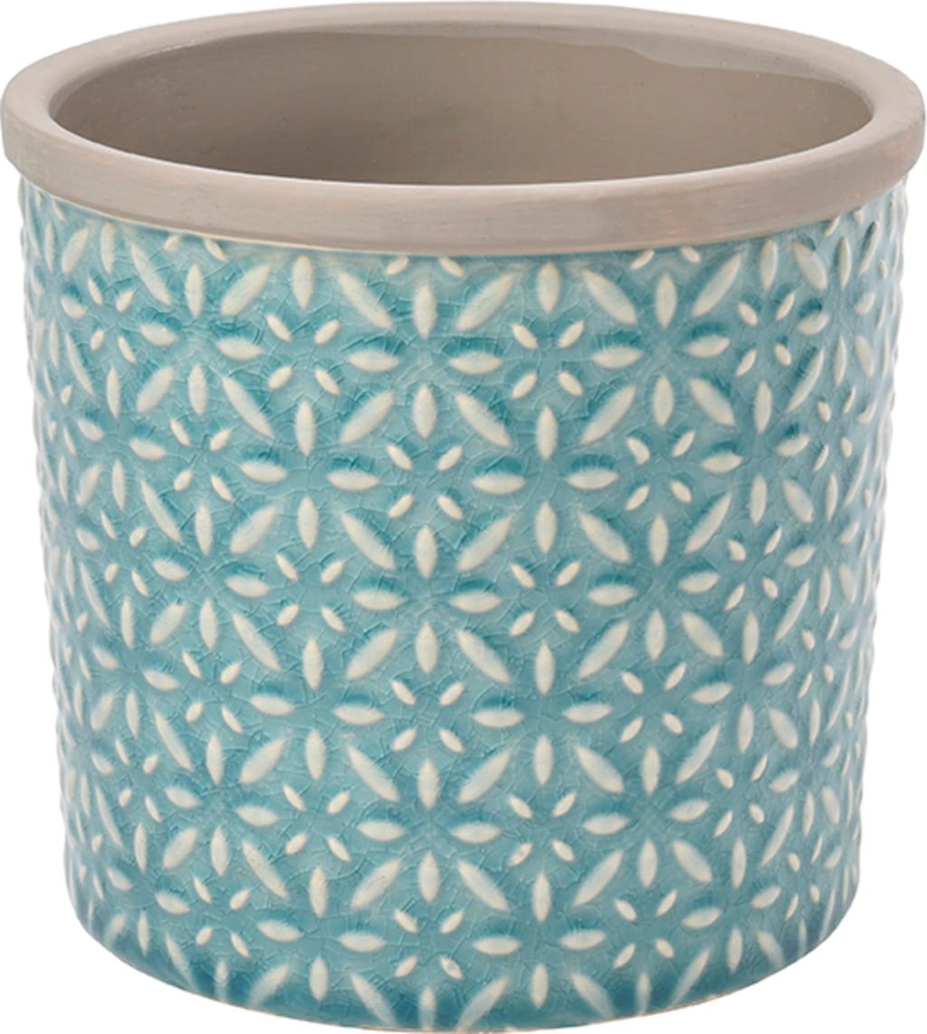 Deze prachtige bloempot brengt de rijke traditie van Toscane in keramiekdesign bij je thuis. Het patroon van de pot doet denken aan madeliefjes en samen met de heldere turquoise kleur is deze pot een prachtige blikvanger.