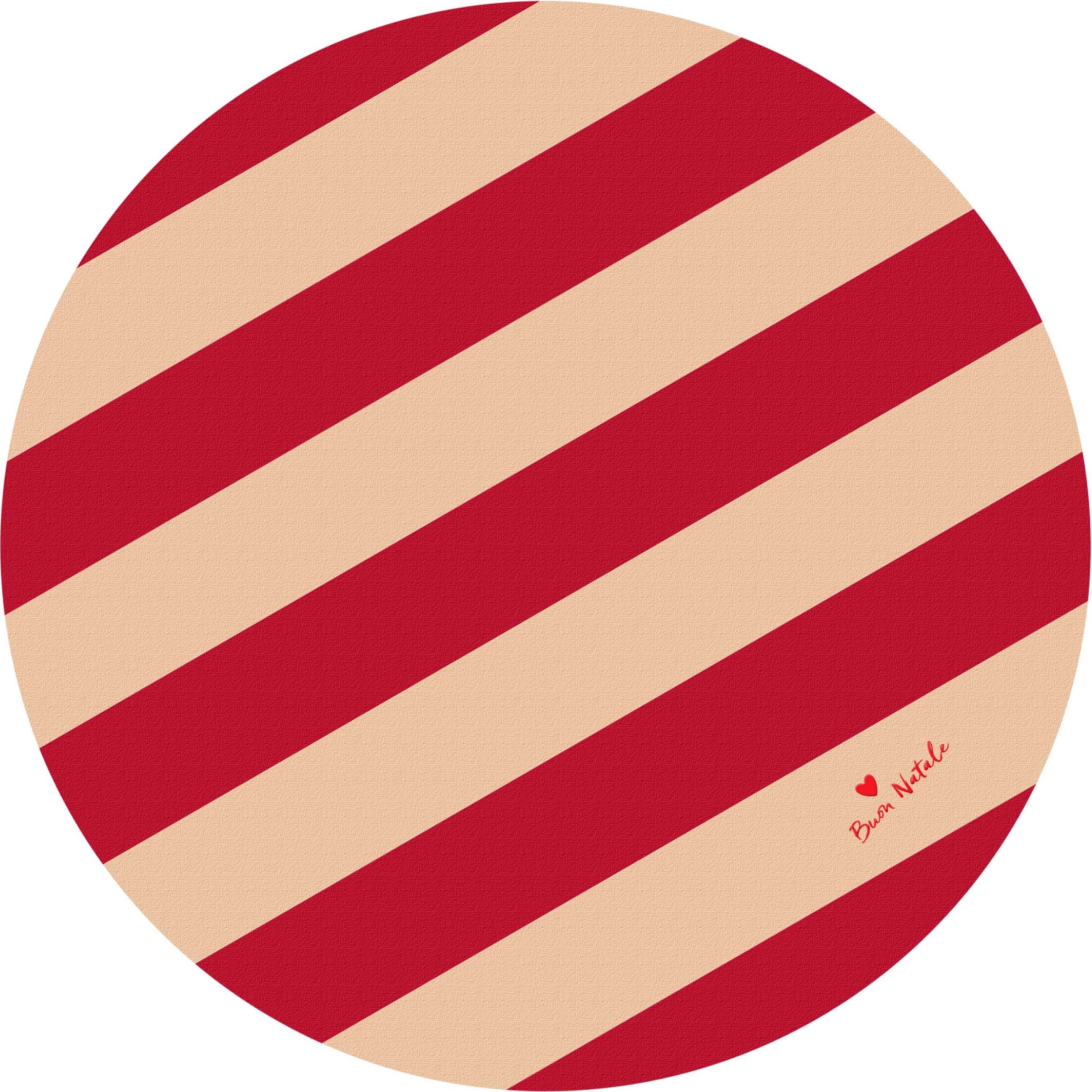 Dit unieke kleed (Ø: 100 cm) maakt indruk met zijn iconische strepen in klassieke kleurencombinaties. Het ontwerp wordt afgerond door de charmante, geborduurde Italiaanse spreuk "Buon Natale" (Vrolijk Kerstfeest), die iedereen meteen in een goed humeur brengt.