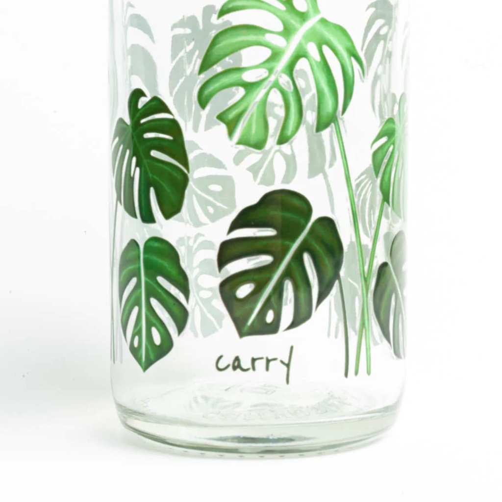Deze drinkfles van robuust glas in een prachtig bladmotief is ideaal voor in je handtas. Hij heeft een inhoud van 0,4 liter en is daarom ook handig voor in de schooltas of kinderrugzak.