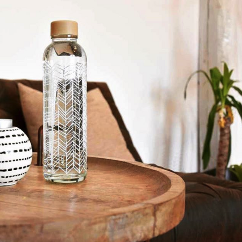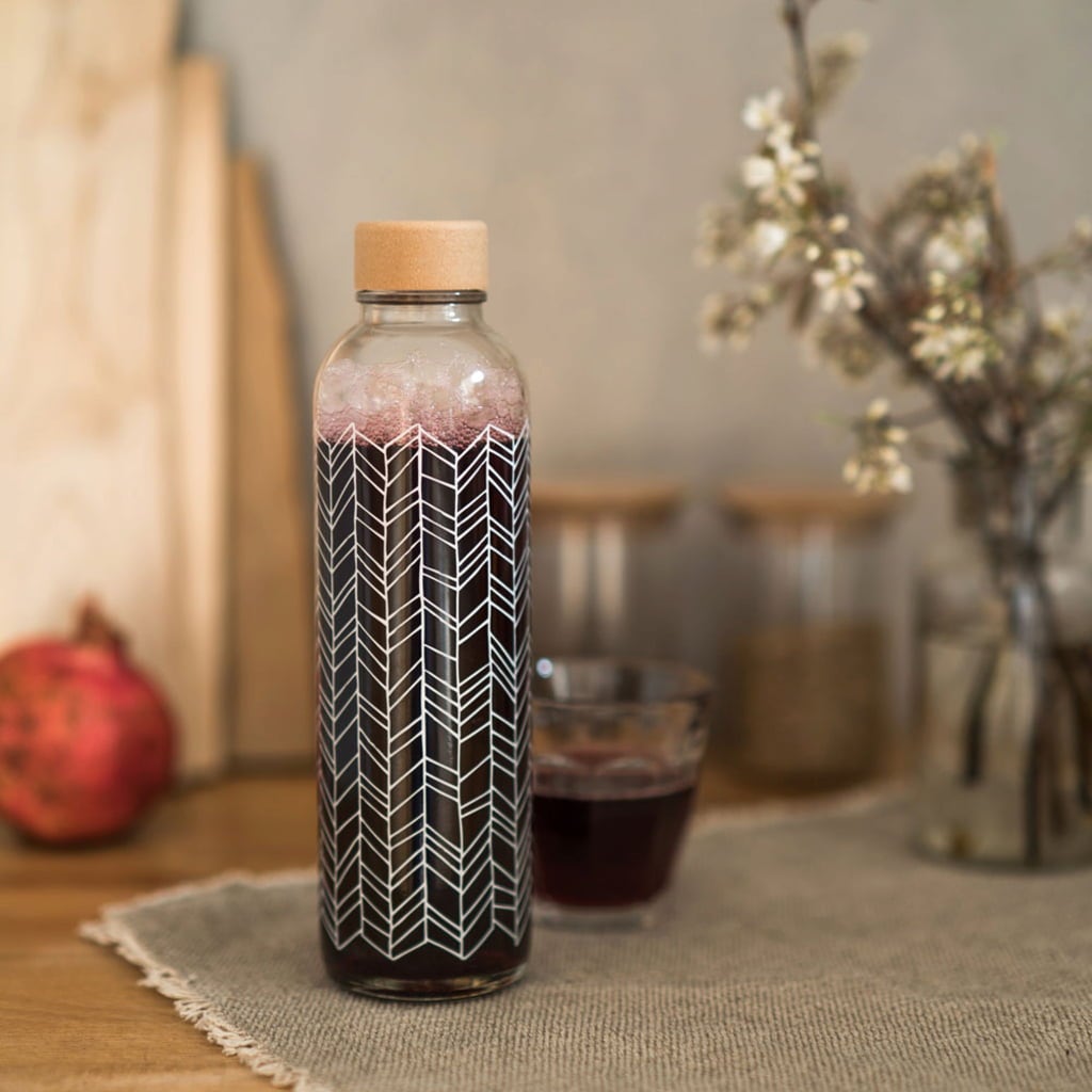 De aangename en grote opening van de glazen fles is bijzonder praktisch om te vullen, te drinken en schoon te maken.