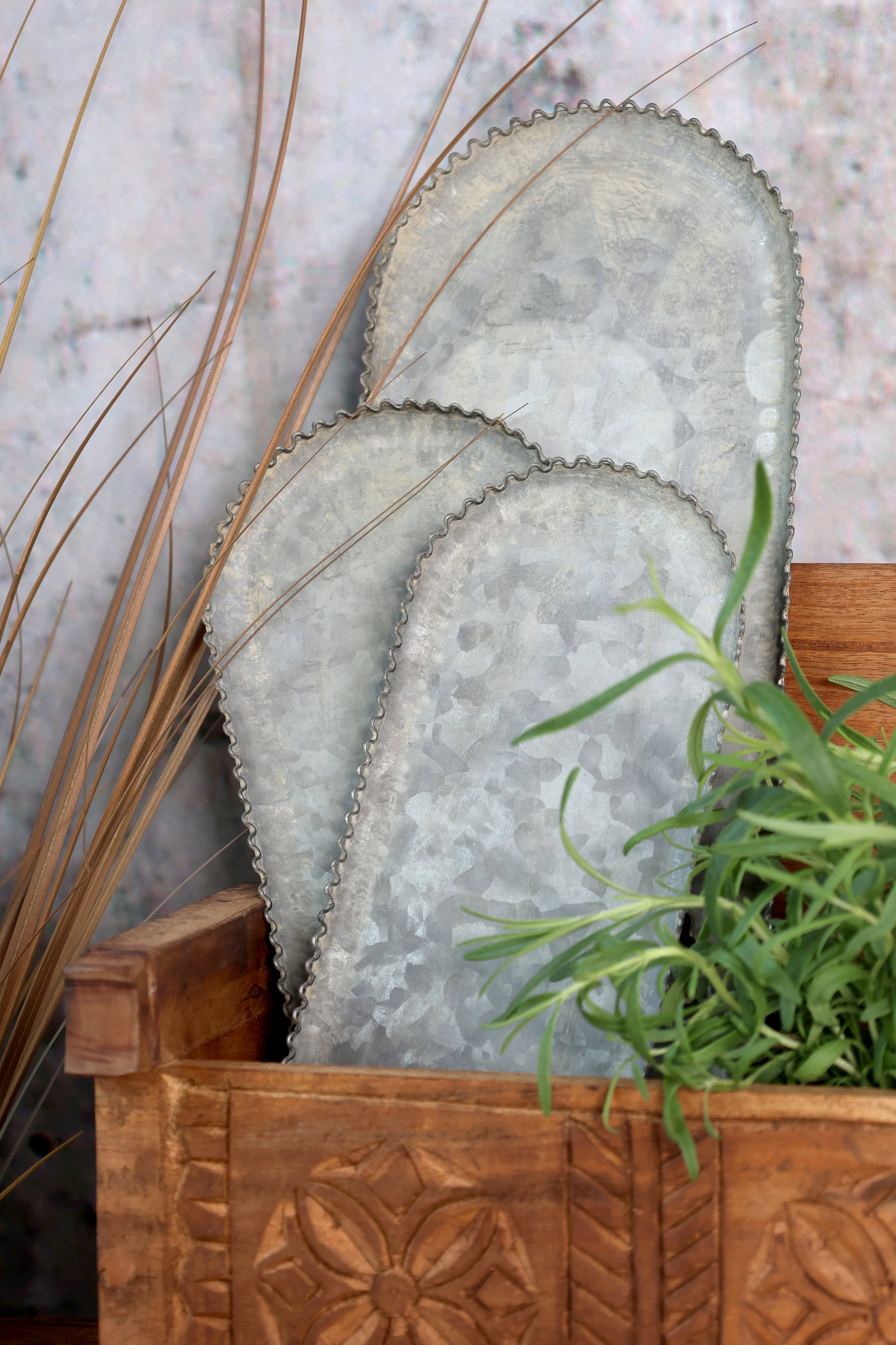 Deze edele set dienbladen met filigraan opengewerkte rand geeft jouw huis een vleugje vintage charme. Perfect om snacks, kaarsen of decoratie stijlvol te presenteren en subtiele accenten te zetten in elke kamer.