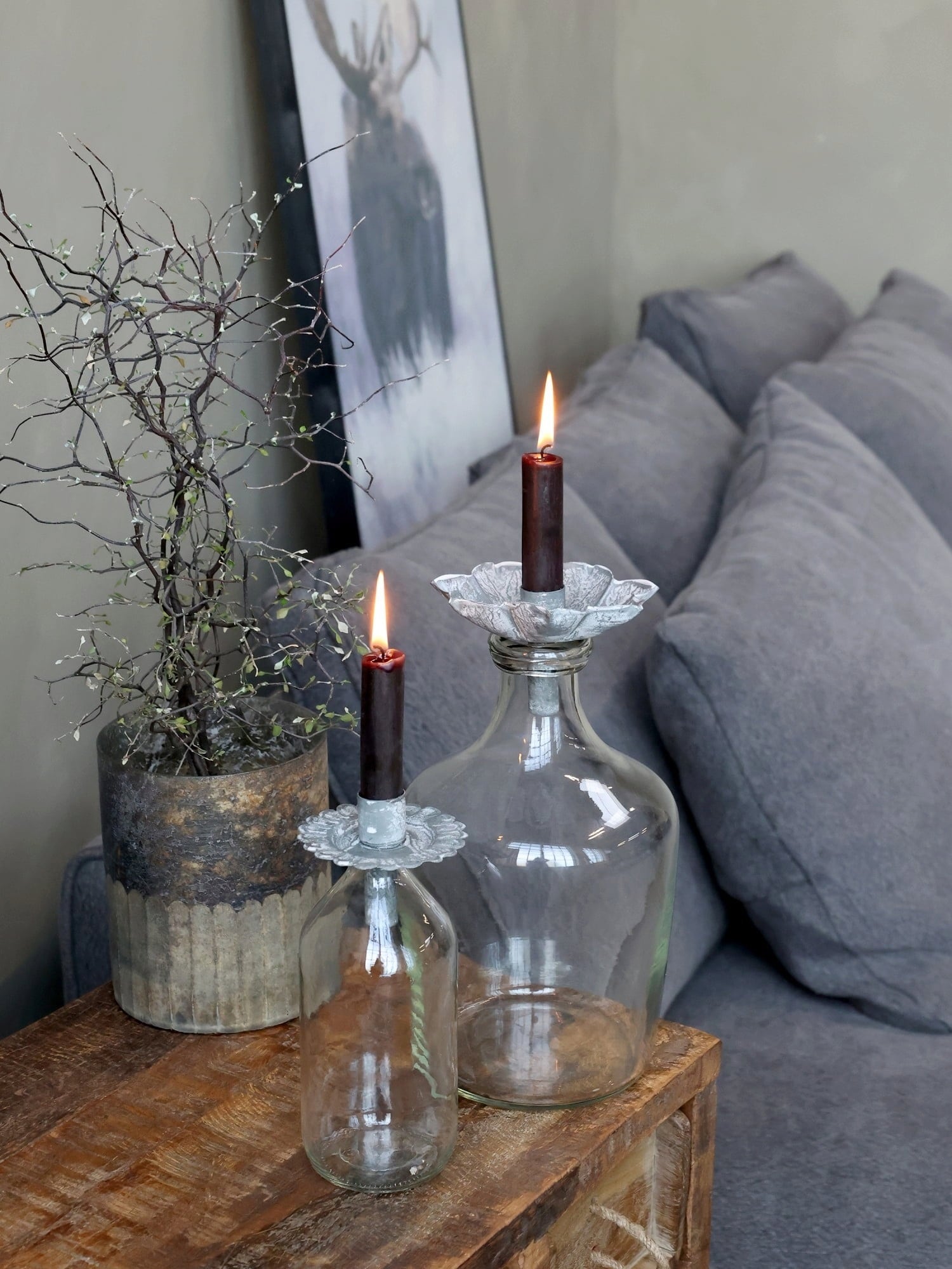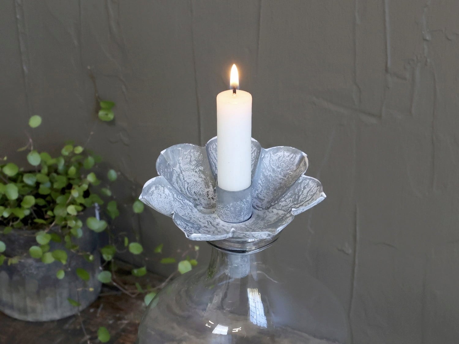 Chic Antique Fles Kandelaar - Bloem, 1 stuk