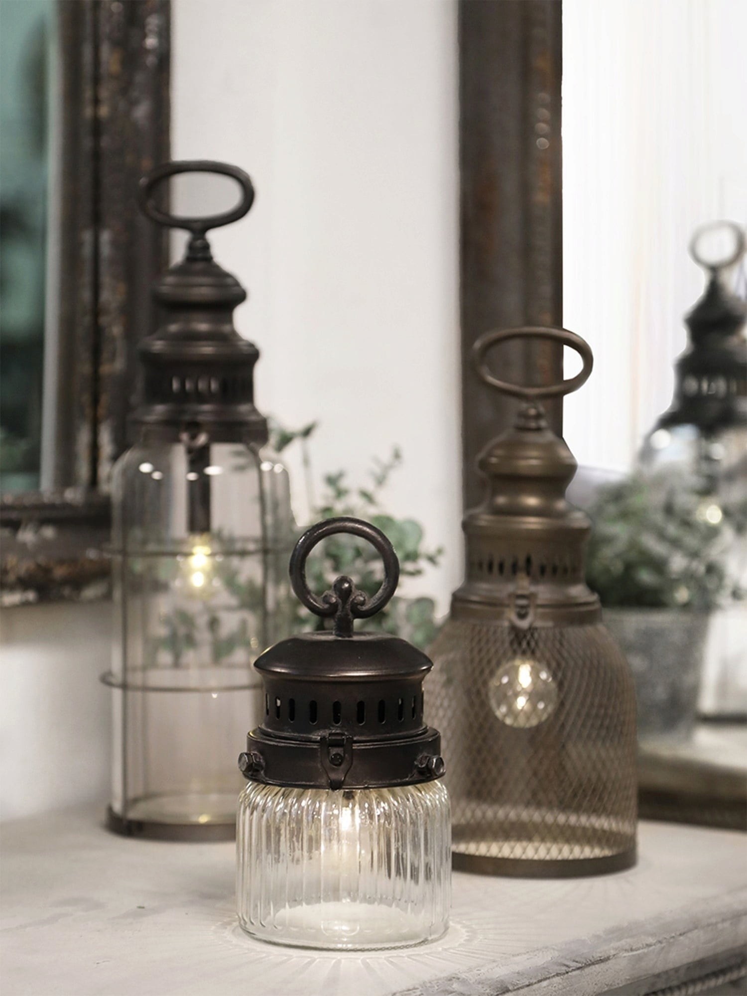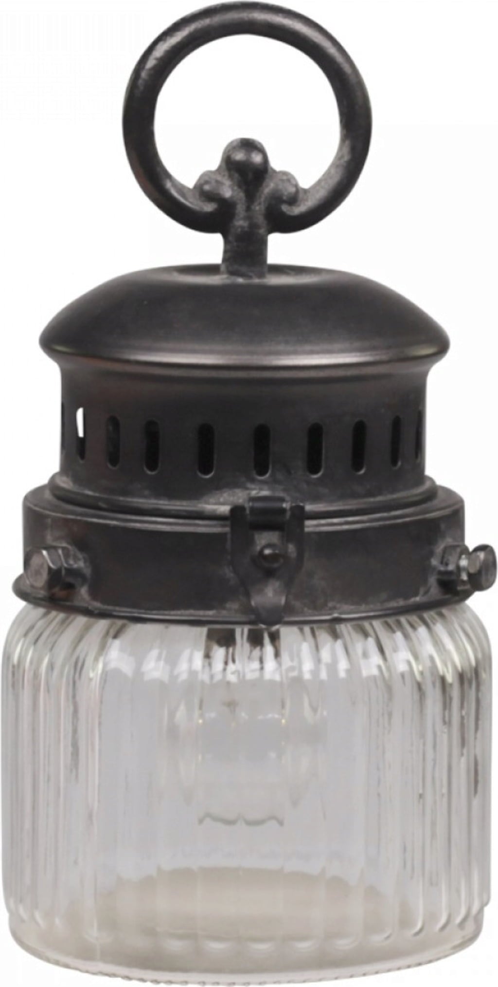 Chic Antique Franse Stallantaarn incl. Gloeilamp & Timer, H 22 cm Ø 11 cm