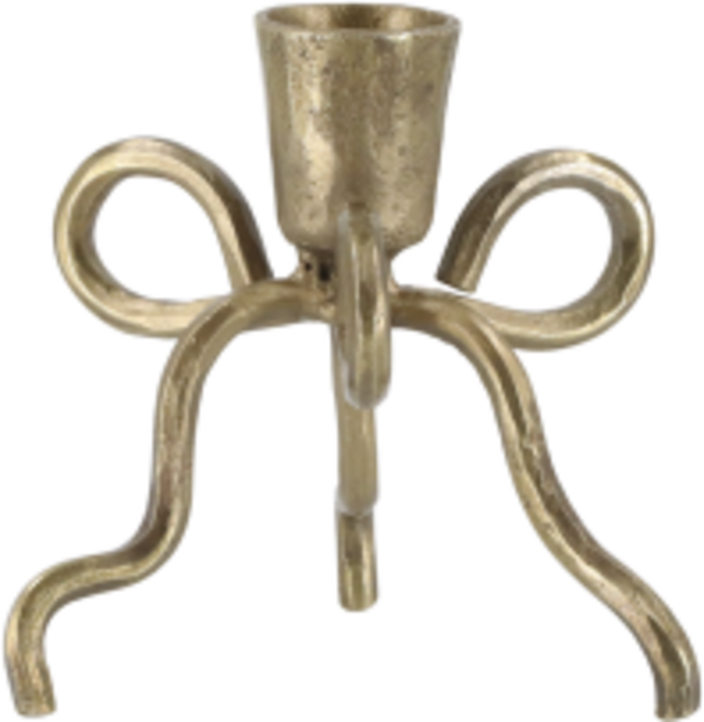 Deze ijzeren kandelaar met een antieke messing look betovert met zijn speelse strikontwerp. Een stijlvol detail dat zowel afzonderlijk als in combinatie met andere maten een warme, feestelijke sfeer creëert.