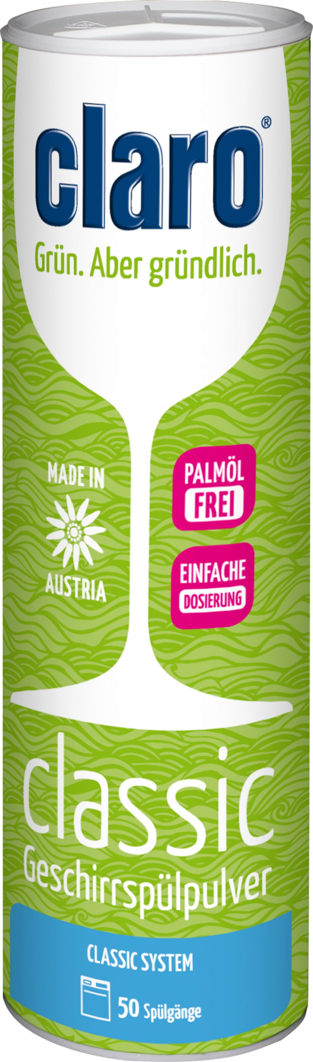 Het ECO Classic poeder van claro is vrij van fosfaat, chloor en palmolie en maakt indruk met zijn hoge reinigingsprestaties. Dankzij het innovatieve ontwerp van de verpakking is doseren heel eenvoudig en kan dit zonder direct huidcontact. Het poeder verwijdert krachtig zwaar vuil en werkt zelfs bij lage temperaturen - voor de schoonste resultaten!