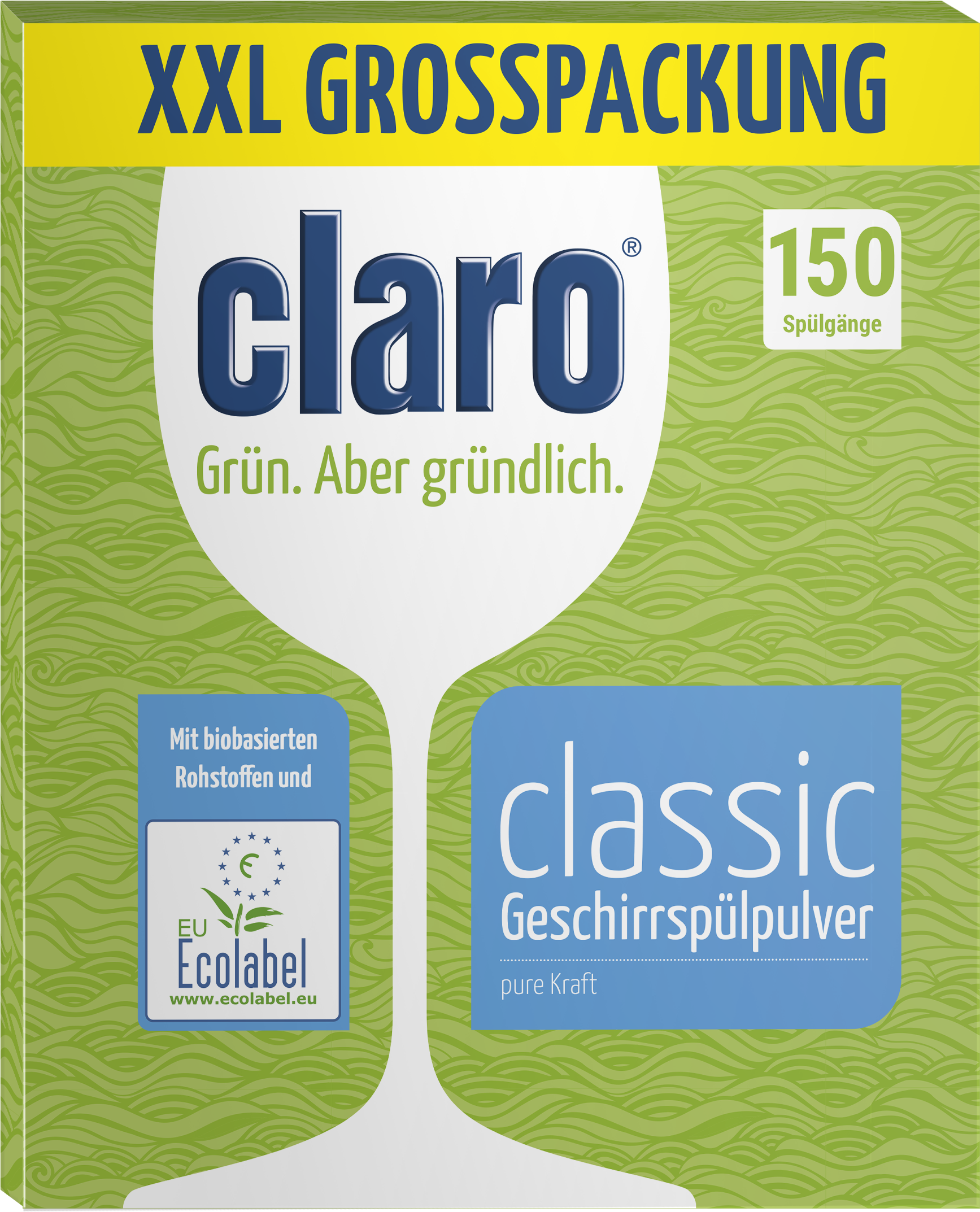 Het ECO Classic poeder van claro is vrij van fosfaat, chloor en palmolie en maakt indruk met zijn hoge reinigingsprestaties. Dankzij het innovatieve ontwerp van de verpakking is doseren heel eenvoudig en kan dit zonder direct huidcontact. Het poeder verwijdert krachtig zwaar vuil en werkt zelfs bij lage temperaturen - voor de schoonste resultaten!