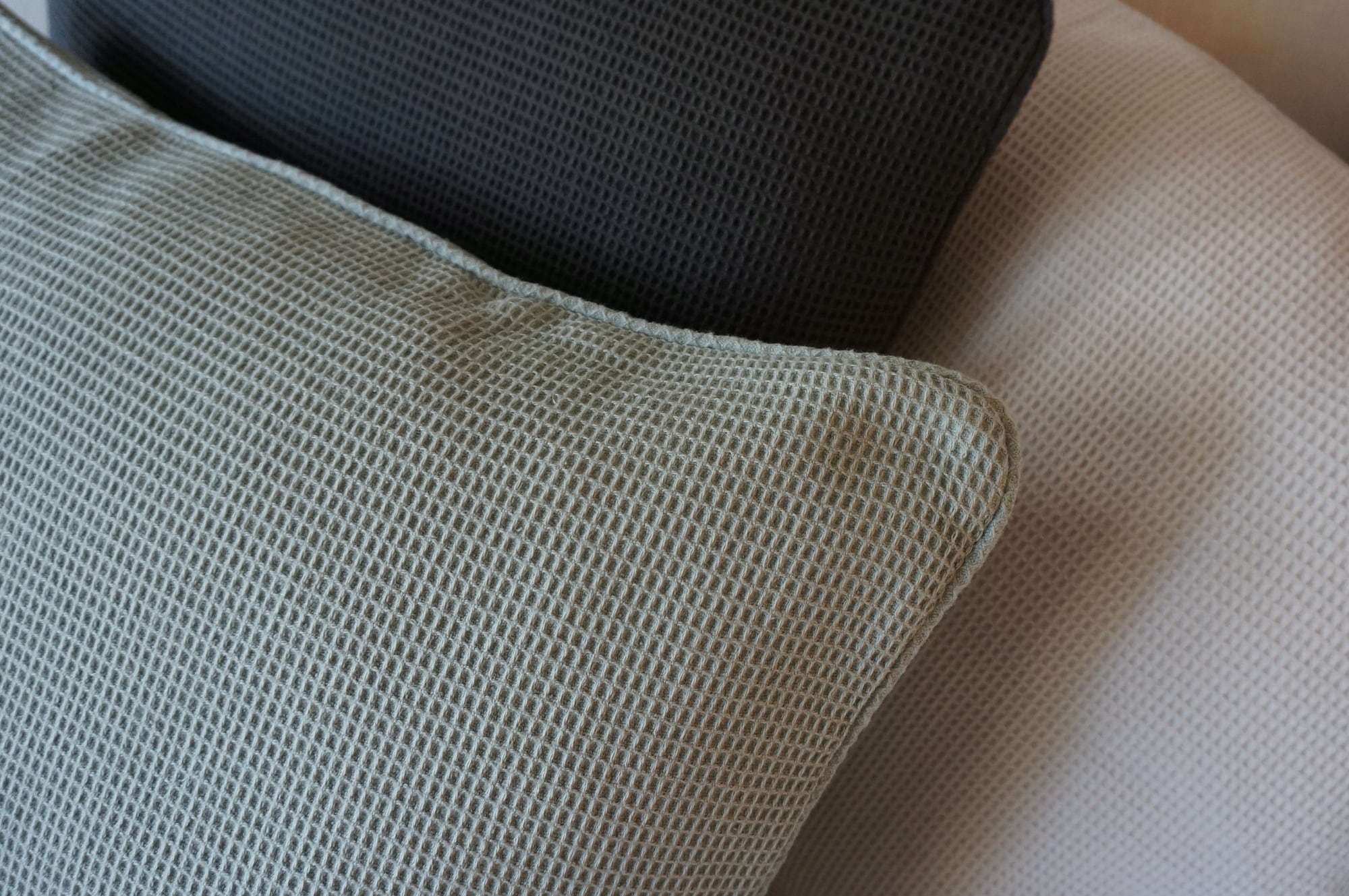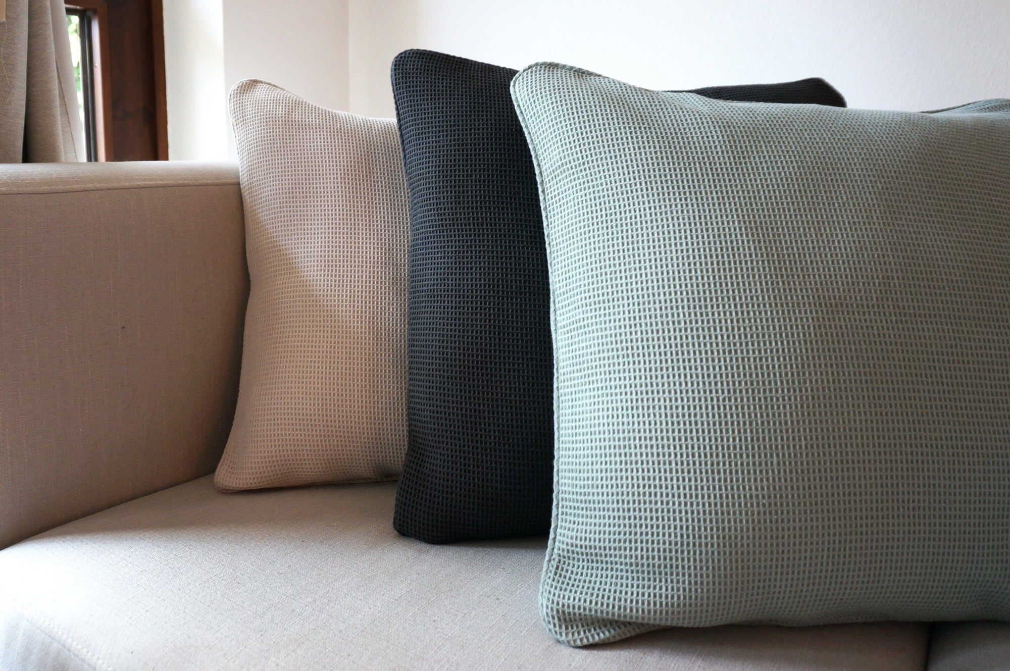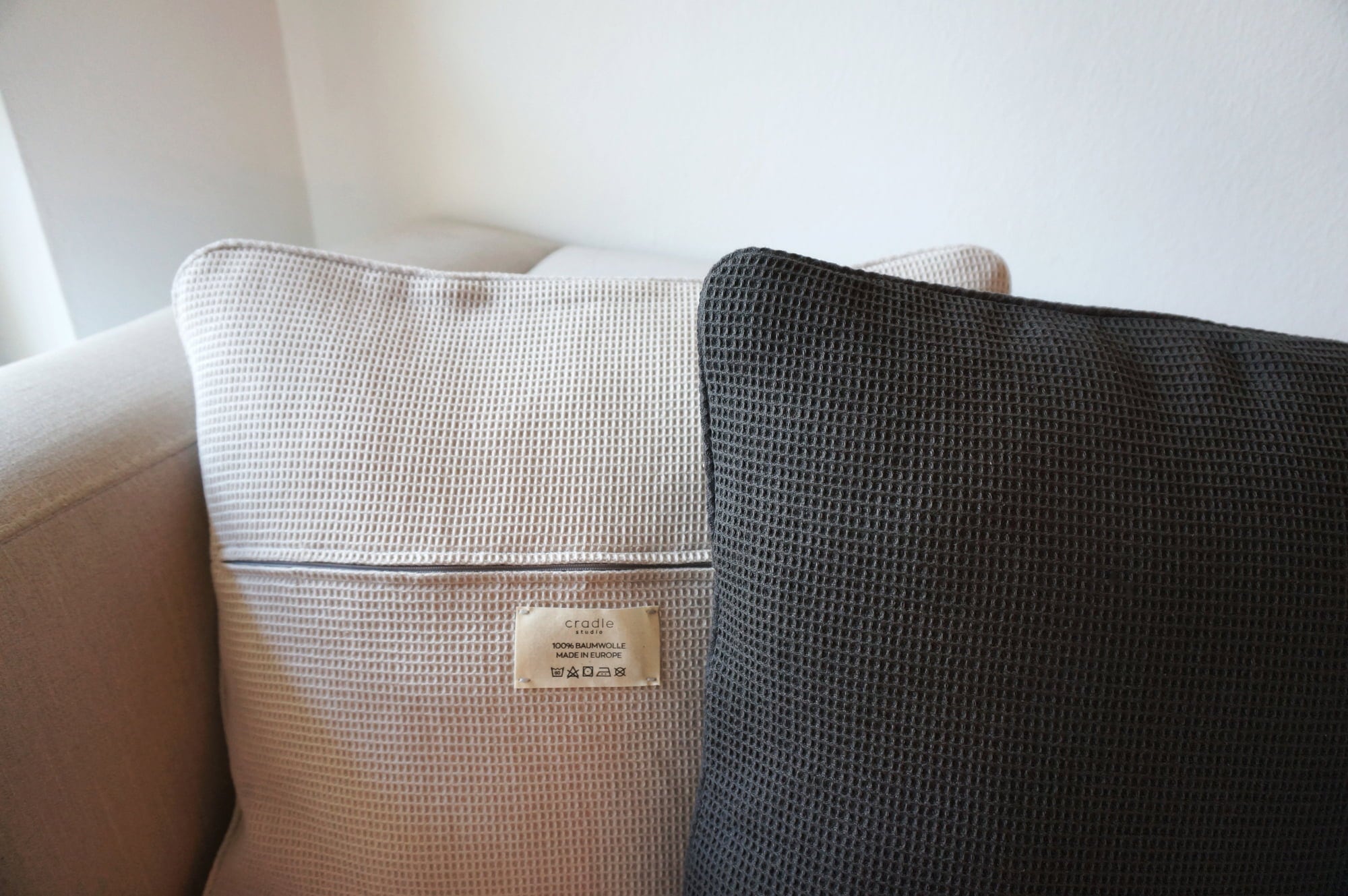 De piqué kussenhoes maakt indruk met zijn stijlvolle wafel piqué look en zachte, ademende 100% katoenen stof. De ritssluiting aan de achterkant is discreet weggewerkt en onderbreekt het eenvoudige ontwerp niet.