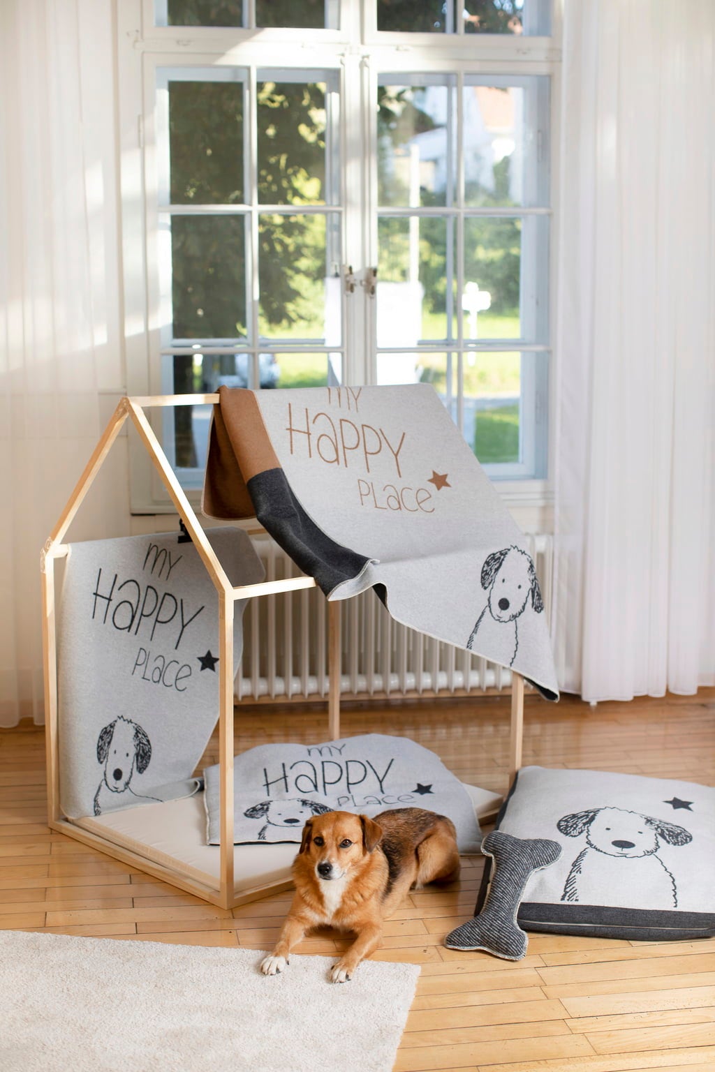 De gevoerde hondenmat met het opschrift "my happy place" is gemaakt van zacht textiel en is daarom de ultieme knusse plek voor je geliefde viervoeter. De mat kan gemakkelijk worden gewassen op 40 °C op een zacht programma en in de droger op een lage temperatuur.