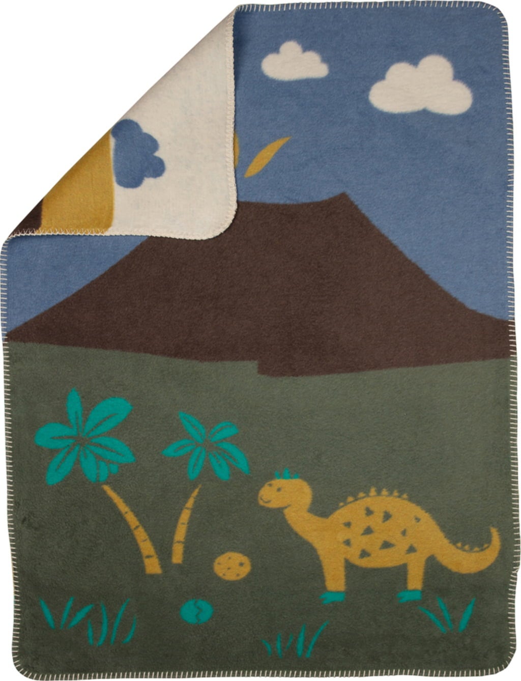 De knusse MILA babydeken met dinosaurusmotief is gemaakt van gerecycled materiaal. Een decoratieve steekrand verfraait de randen van de deken. Dankzij de zachte stof is de deken ideaal om overal mee te knuffelen - in de auto, in de kinderwagen of thuis voor het slapen gaan.