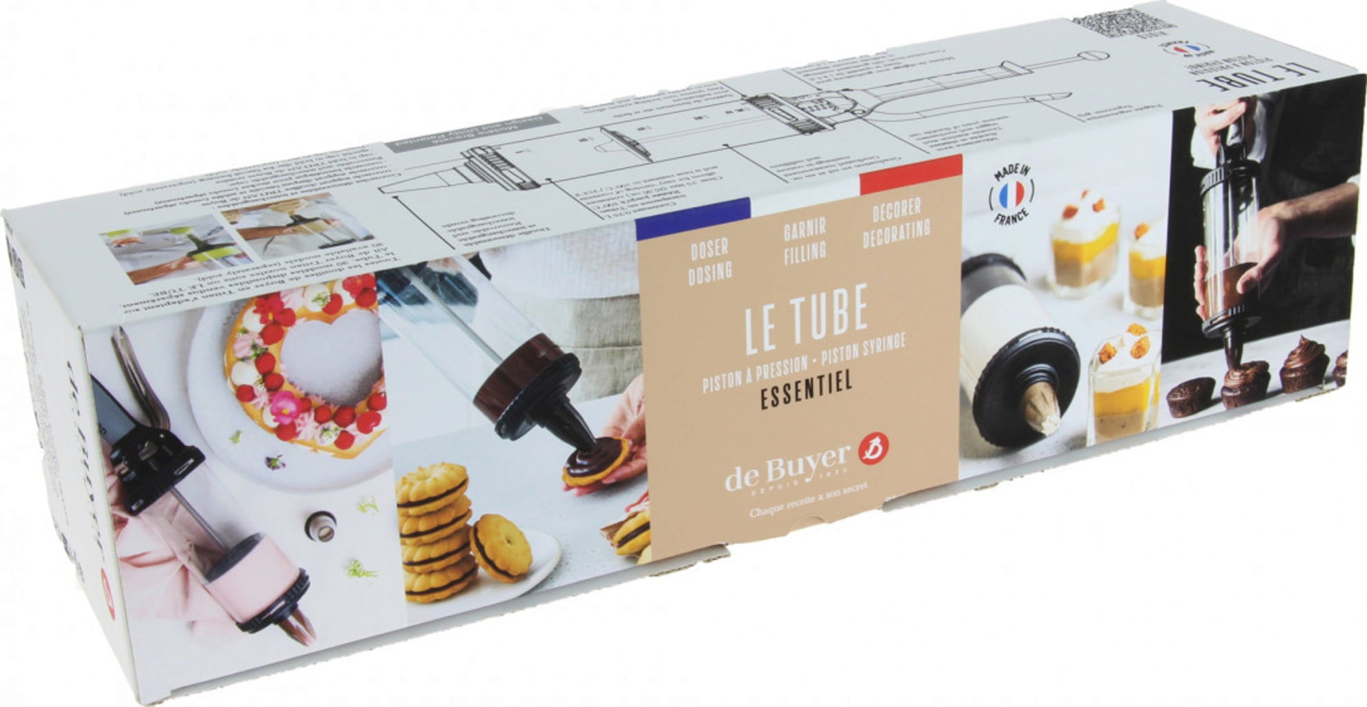 Je kunt dus gemakkelijk vullen, decoreren en garneren, zelfs dikke crèmes, soezendeeg en mousses zijn geen uitdaging voor Le Tube. Deze set bevat ook twee verschillende tubes zodat je meteen met bakken kunt beginnen.