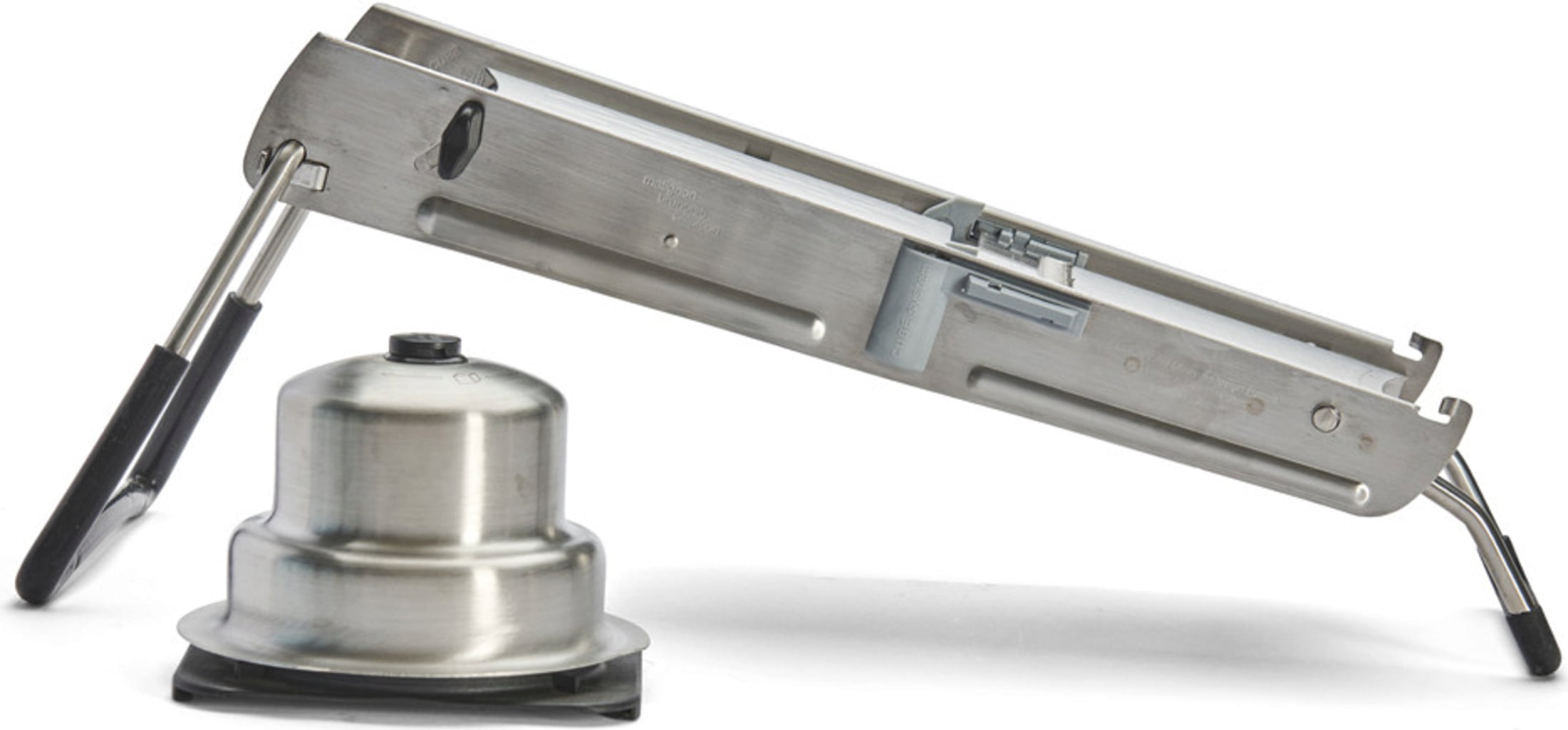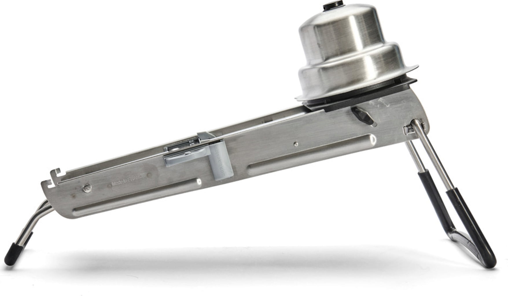 Dankzij de slede en de ronde schuif van geborsteld roestvrij staal met rotatiecontrolesysteem kun je gemakkelijk en gelijkmatig snijden. Met dit veelzijdige hulpje zijn er geen grenzen aan je creativiteit in de keuken!