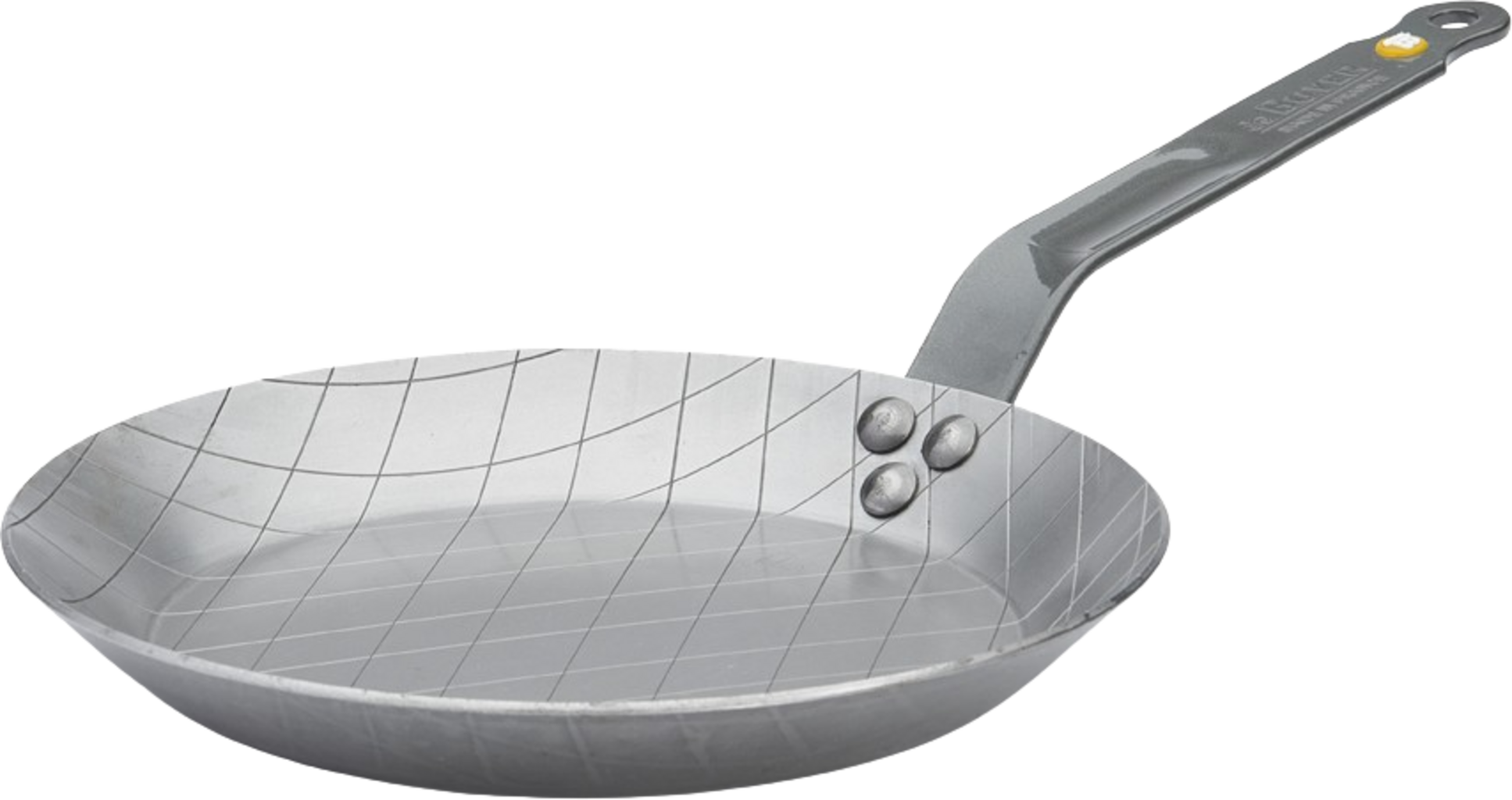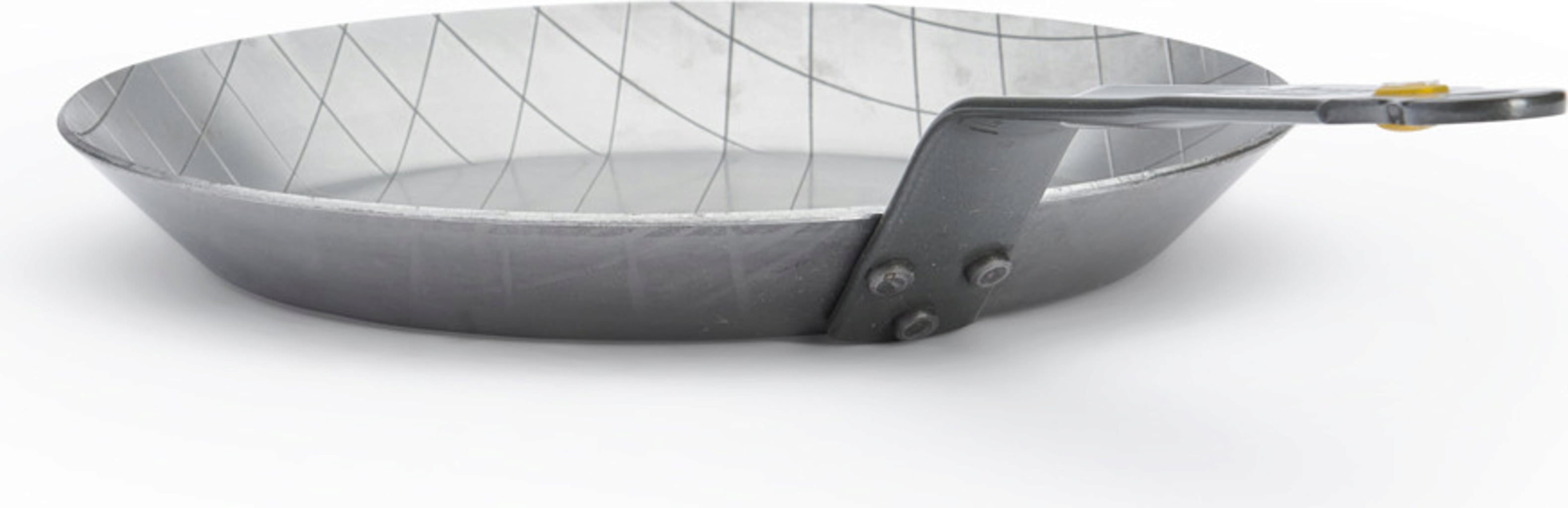 Deze pan is gemaakt van hoogwaardig, wit gewalst staal en voorzien van een beschermende coating van bijenwas, waardoor hij optimaal beschermd is tegen oxidatie en bovendien heel gemakkelijk te bakken is. De geklonken, gebogen handgreep van gegoten roestvrij staal zorgt voor een comfortabele hantering. Hij blijft koel, ligt prettig in de hand en laat je moeiteloos werken op de kookplaat!