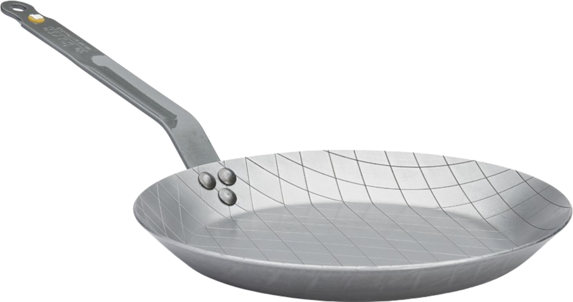Deze pan is gemaakt van hoogwaardig, wit gewalst staal en voorzien van een beschermende coating van bijenwas, waardoor hij optimaal beschermd is tegen oxidatie en bovendien heel gemakkelijk te bakken is. De geklonken, gebogen handgreep van gegoten roestvrij staal zorgt voor een comfortabele hantering. Hij blijft koel, ligt prettig in de hand en laat je moeiteloos werken op de kookplaat!