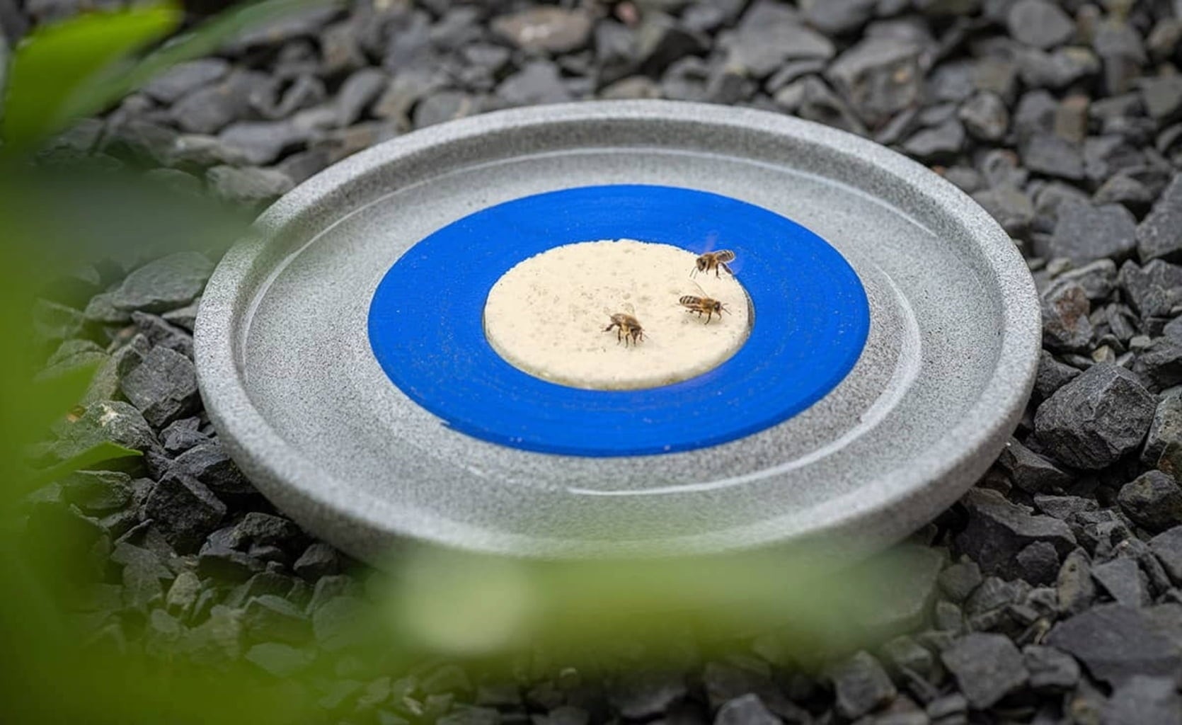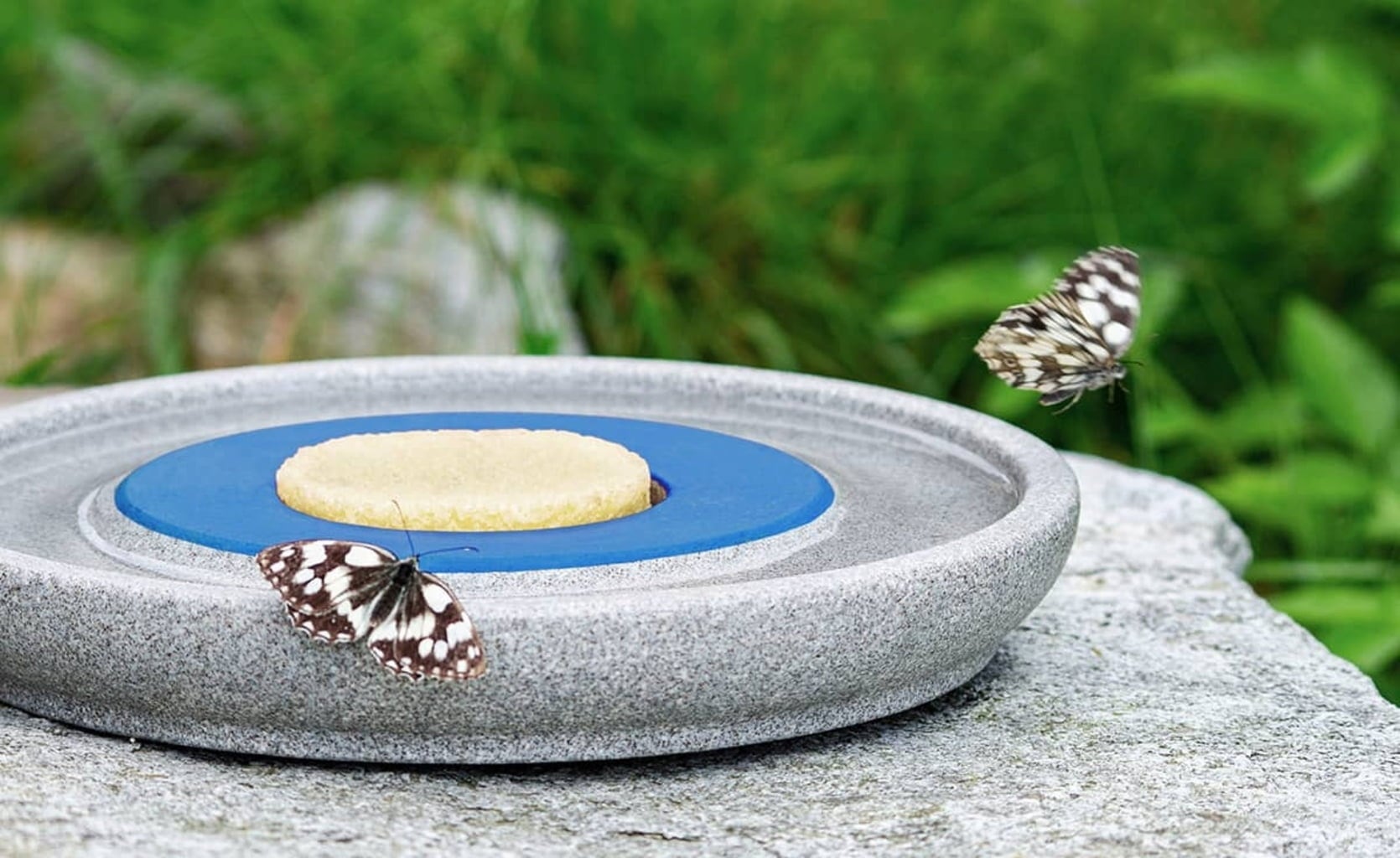 Door het slimme ontwerp is dit insectenstation een voedselbron en drinkbak in één. In het midden zit een sponsje dat gedrenkt is in siroop ter vervanging van nectar. De binnenrand dient als plank voor vast voedsel zoals stukjes fruit. De watergoot eromheen houdt mieren weg van sponzen en vast voedsel en is tevens een drinkbak voor bijen etc. Met dit insectenstation kun je dus echt iets goeds doen voor de bestuivers in je tuin.