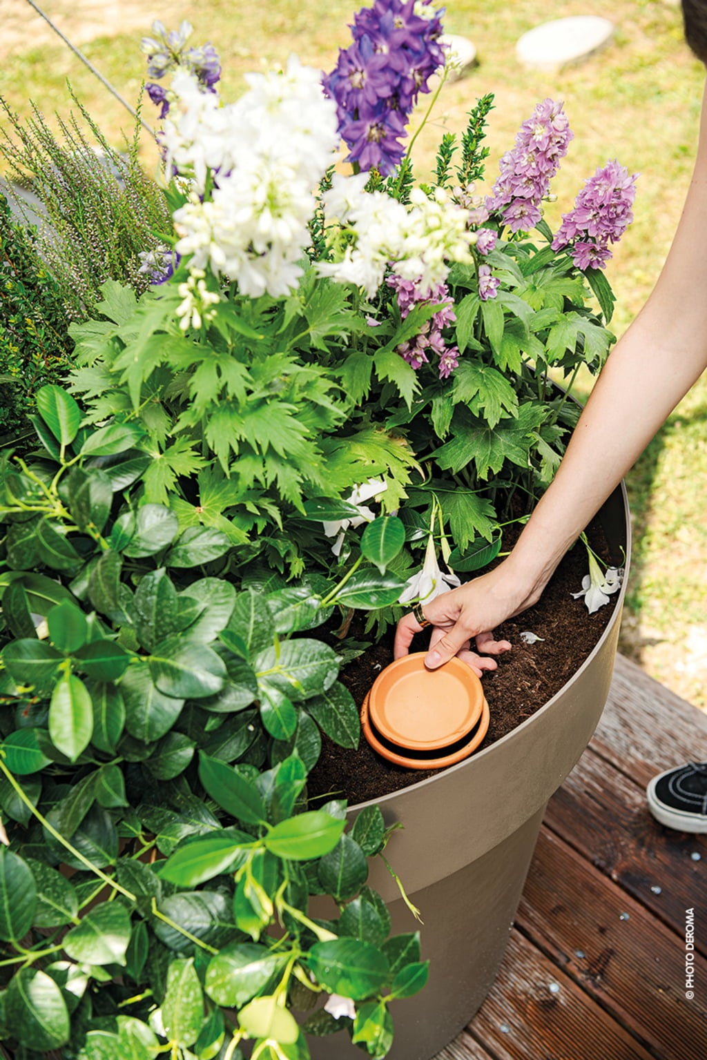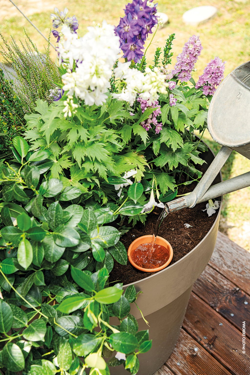 De AquaDO irrigatiepoit van Deroma is gebaseerd op een duizenden jaren oude traditie. De kleine kleikruiken zijn een waardevolle aanvulling, vooral voor verhoogde bedden of potplanten. Ze worden in de grond ingegraven en vervolgens gevuld met water, dat continu wordt afgegeven aan de omgeving. De wortels worden zo tot 5 dagen van vocht voorzien zonder extra water te geven.