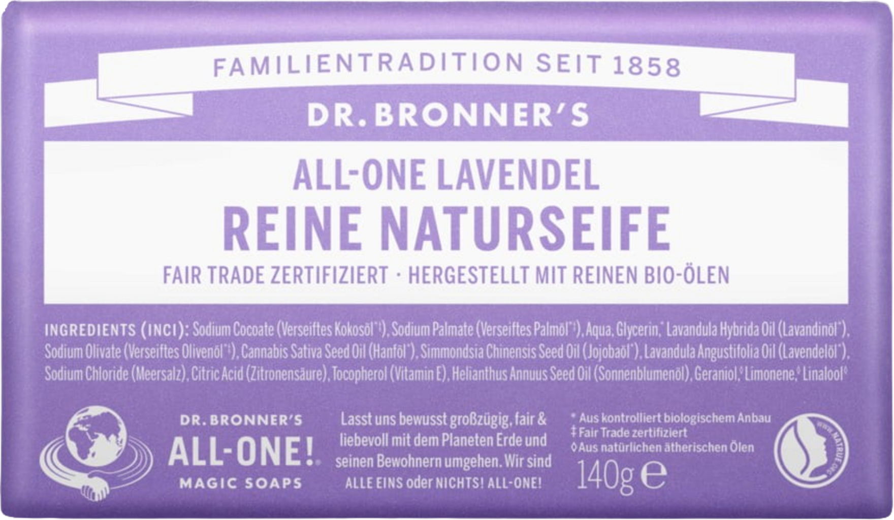 Dr. Bronner's Bar Soap Lavendel, 140g € 6,09 (€ 43,50 / kg)