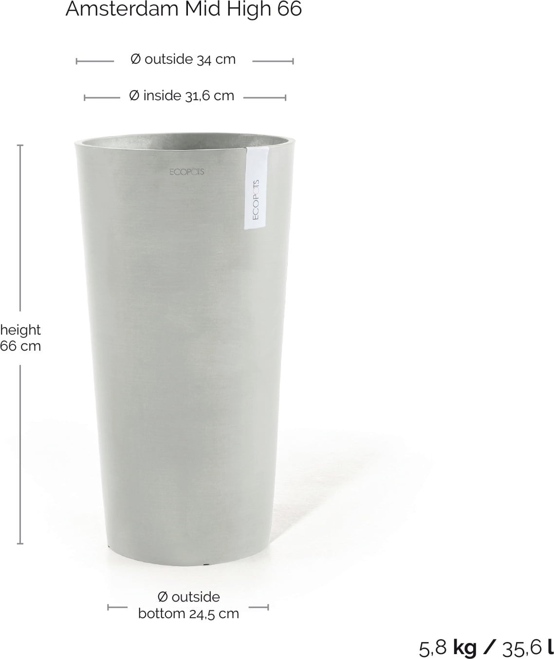 Ecopots Amsterdam Bloempot Mid High 66, Witgrijs