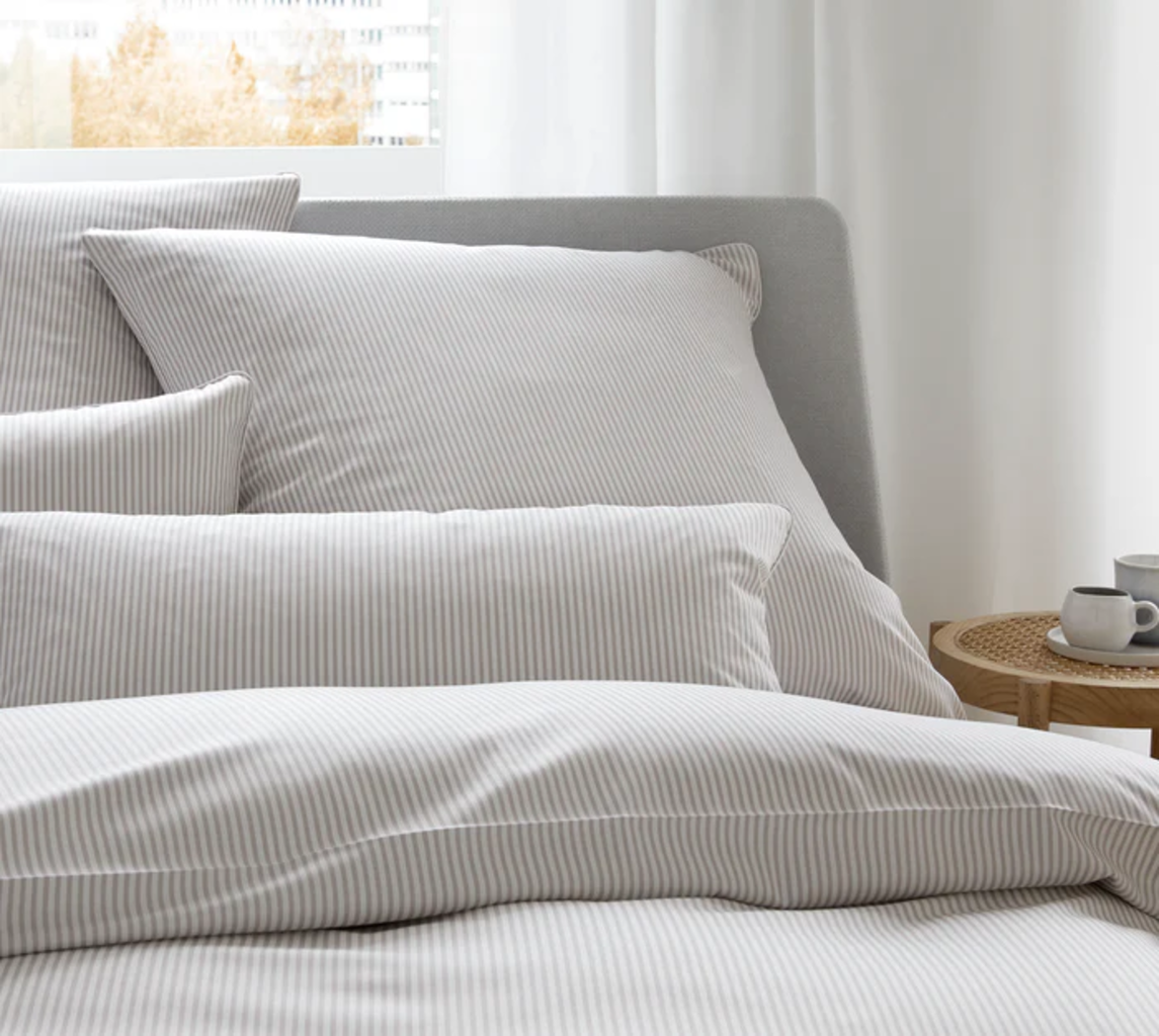 Laat je betoveren door de tijdloze charme van het dekbedovertrek Hamburger Streifen van elegante! Dit dekbedovertrek is een echte klassieker, geproduceerd in Duitsland, en geeft je slaapkamer een frisse én elegante uitstraling. De fijne strepen in combinatie met de subtiele kleurkeuze zorgen voor een stijlvolle look die altijd in de smaak valt.