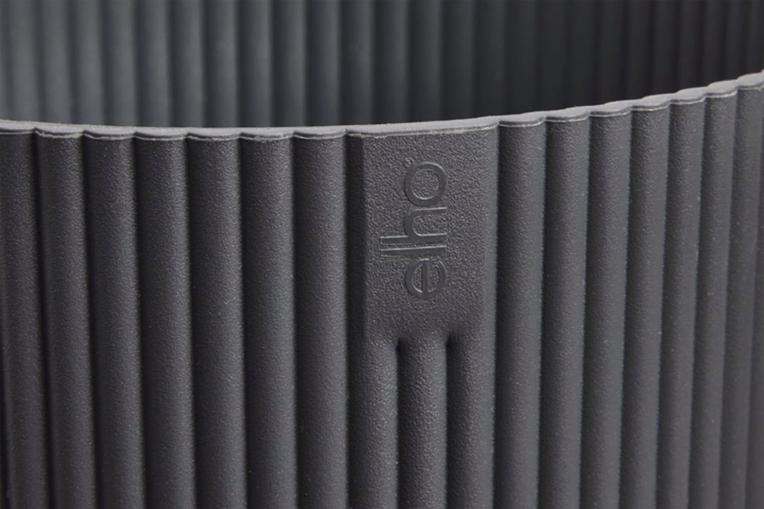 De tijdloos eenvoudige vorm en het decoratieve gegroefde patroon maken van deze gerecyclede plastic bloempot een stijlvolle blikvanger en een elegante omlijsting voor je kamerplanten. Een moderne manier om je huis groener te maken.