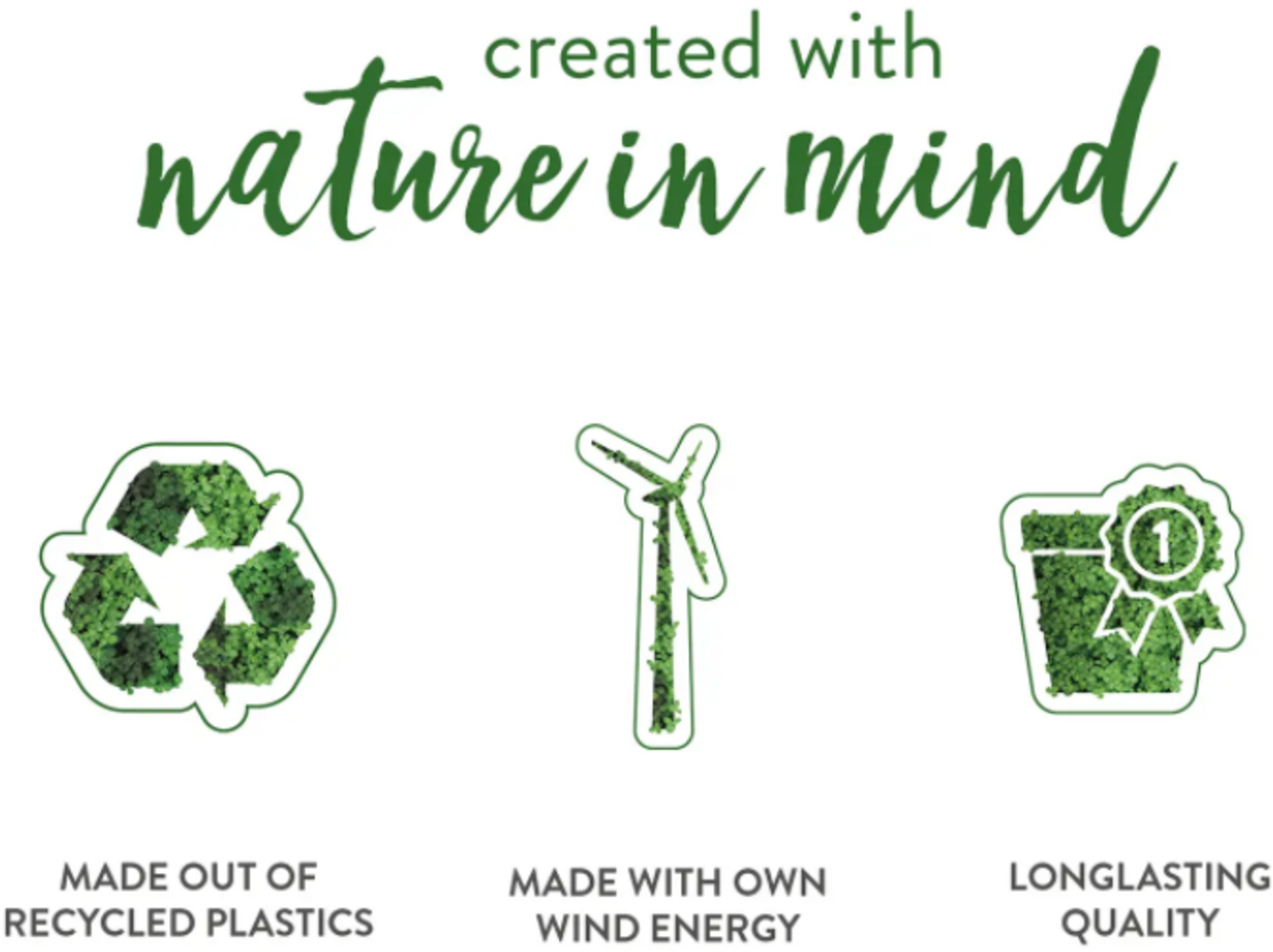 | Eigenschappen: | Vorstbestendig, Geschikt voor buitengebruik, UV-bestendig, Gerecycled materiaal, Waterafvoer mogelijk |