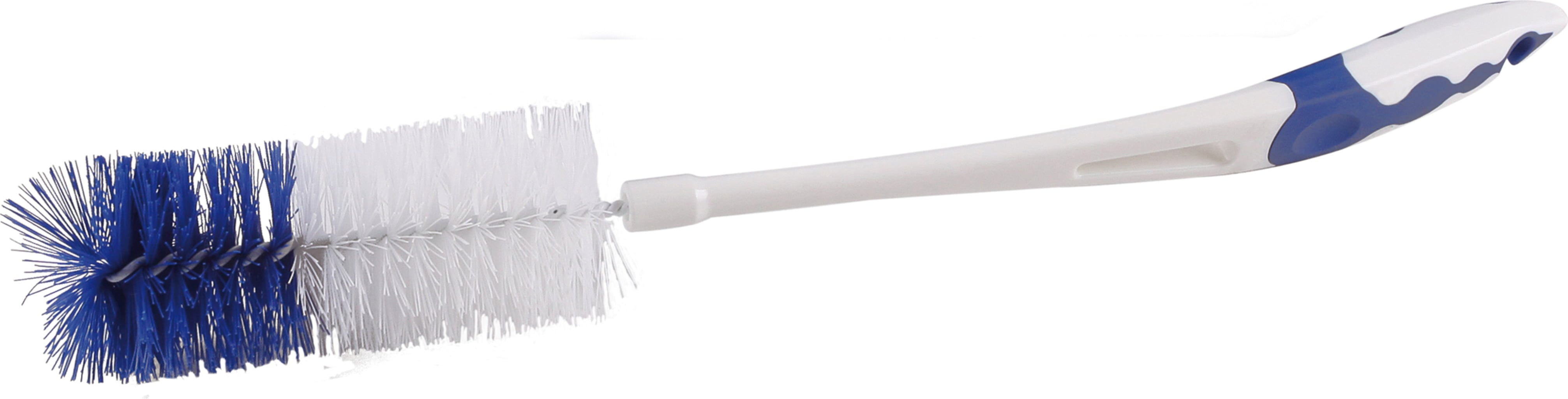 De lange steel en de stabiele reinigingskop maken de fles grondig schoon