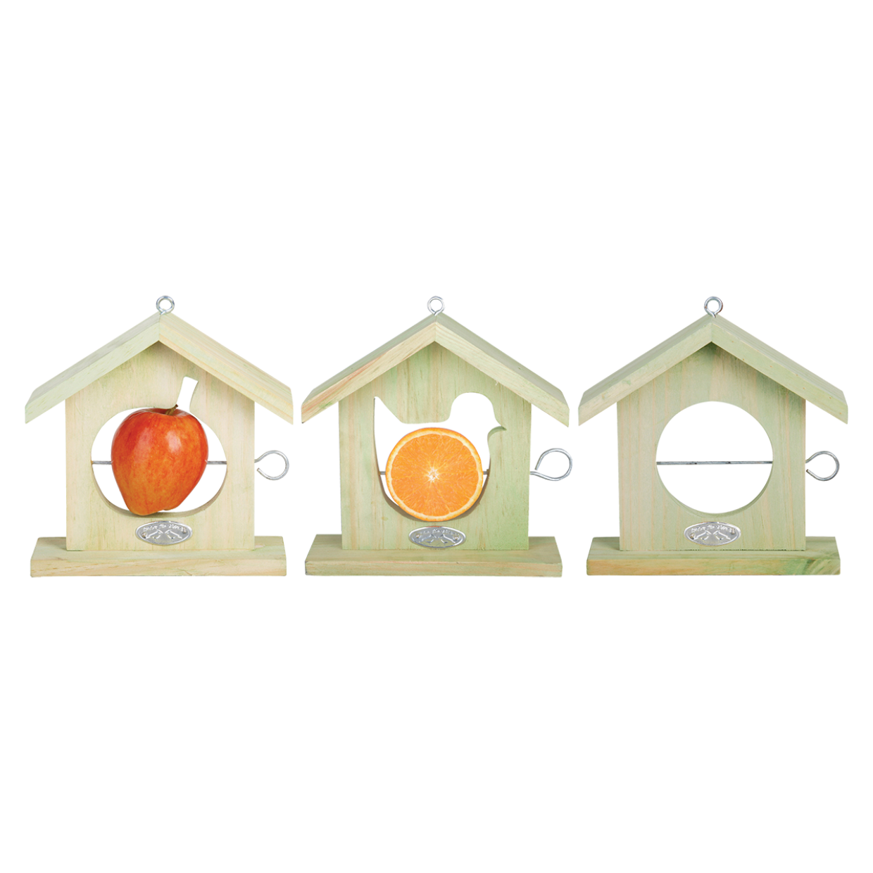 Appelhuisjes kunnen worden gevuld met voedsel zoals appels en andere soorten fruit met behulp van de metalen pin die naar de zijkant kan worden uitgetrokken. Om voldoende afstand tot potentiële roofdieren te bewaren, mogen de voederhuisjes niet te laag worden geplaatst. Borstel de voederhuisjes minstens één keer per jaar schoon met warm water.