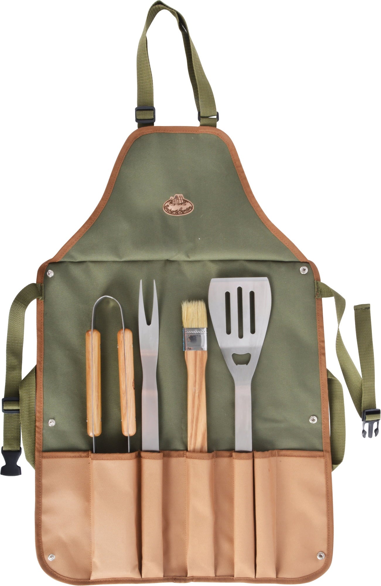 Met deze set ben je perfect uitgerust voor je volgende barbecue. De aantrekkelijke schort van hoogwaardig canvas voelt niet alleen geweldig aan, maar beschermt jou en je kleren ook tegen lelijke vetvlekken. De 4-delige barbecue bestekset maakt het bereiden van eten nog leuker. Als je het niet nodig hebt, kun je het opbergen in de ruime zakken van je schort. De set is ook makkelijk op te bergen en je hebt alles in één keer bij de hand, zodat je alleen nog maar de barbecue hoeft aan te steken.