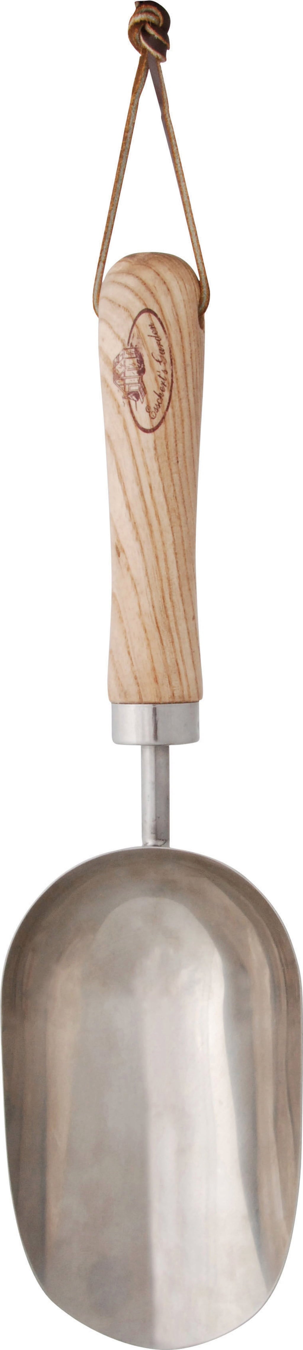 De roestvrijstalen compostschep heeft hoge zijkanten en is ideaal voor verpotwerkzaamheden. Ook ideaal voor het strooien van grit, gazonzaad, kunstmest, enz. Het handvat is gemaakt van robuust essenhout. Om lang plezier van het tuingereedschap te hebben, moet je het na gebruik schoonmaken en op een droge plaats bewaren.