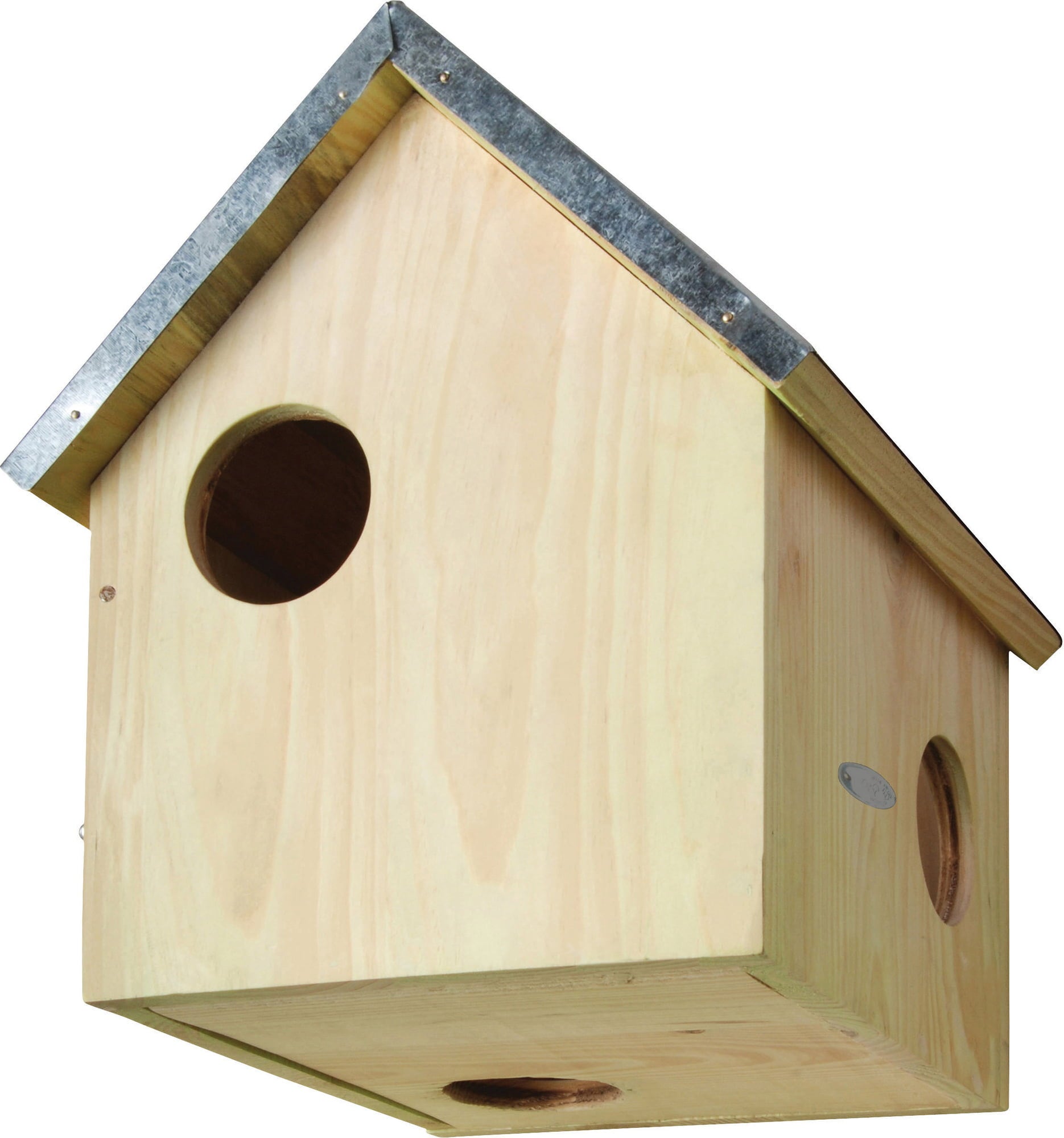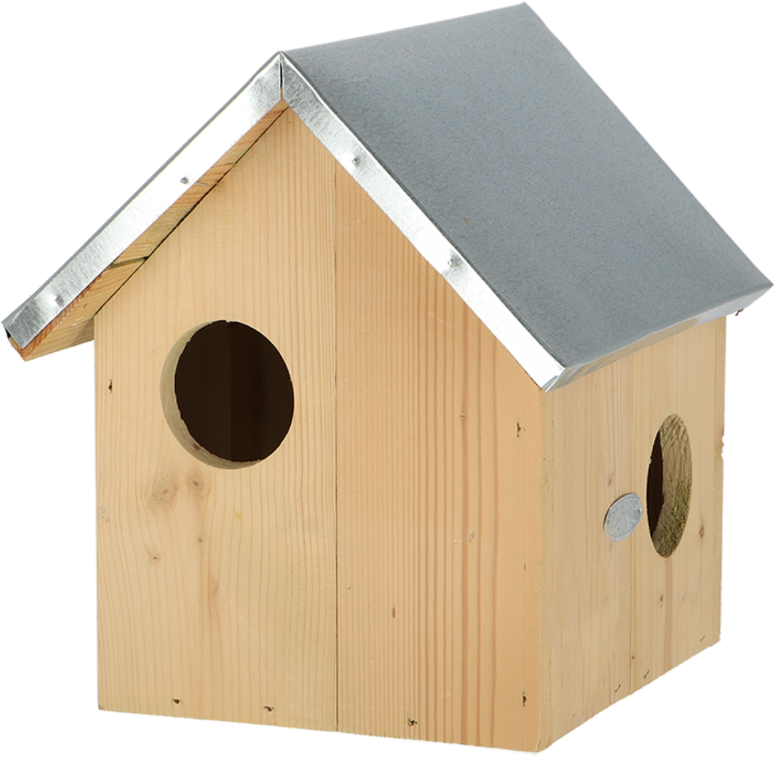 Het is zinvol om meerdere nethuisjes in het zicht van elkaar op te hangen. Een eekhoornkast wordt gekenmerkt door de beschikbaarheid van meerdere ingangen. Het is belangrijk om één ingang dicht bij de stam te plaatsen om de eekhoorns de nodige veiligheid te bieden. Zo kunnen ze het hokje snel verlaten in geval van gevaar. Monteer het eekhoornhuisje zo hoog mogelijk in een boom en, indien mogelijk, in de buurt van een splitsing in een tak op het zuidoosten. FSC®-gecertificeerd dennenhout met zinken dak.