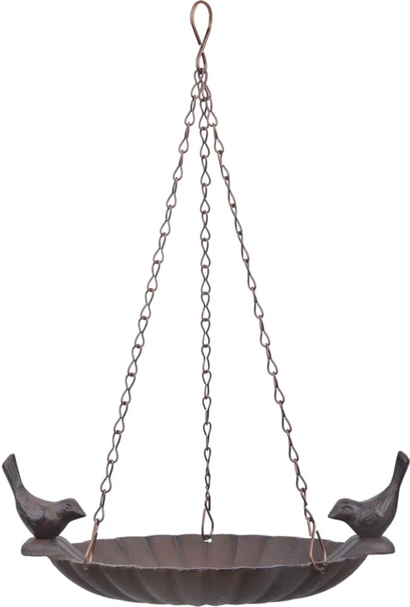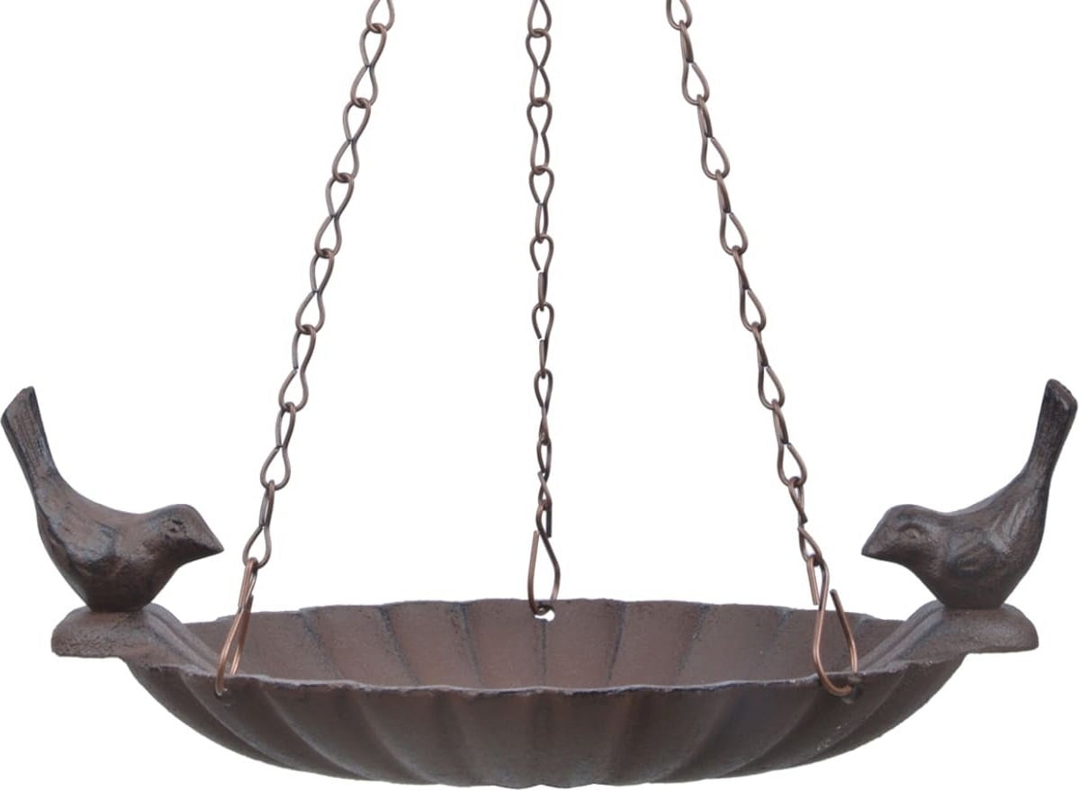 Het prachtige vogelbad van stevig gietijzer biedt dorstige vogels een gezellige rustplaats. Met de ketting en ophanghaak kan het gemakkelijk aan een boom, balk of plafond worden bevestigd. De plek moet echter wel rustig en ontoegankelijk voor katten worden gekozen. Overigens gebruiken vogels een met water gevulde drinkbak niet alleen om te drinken, maar ook voor een ontspannend bad.