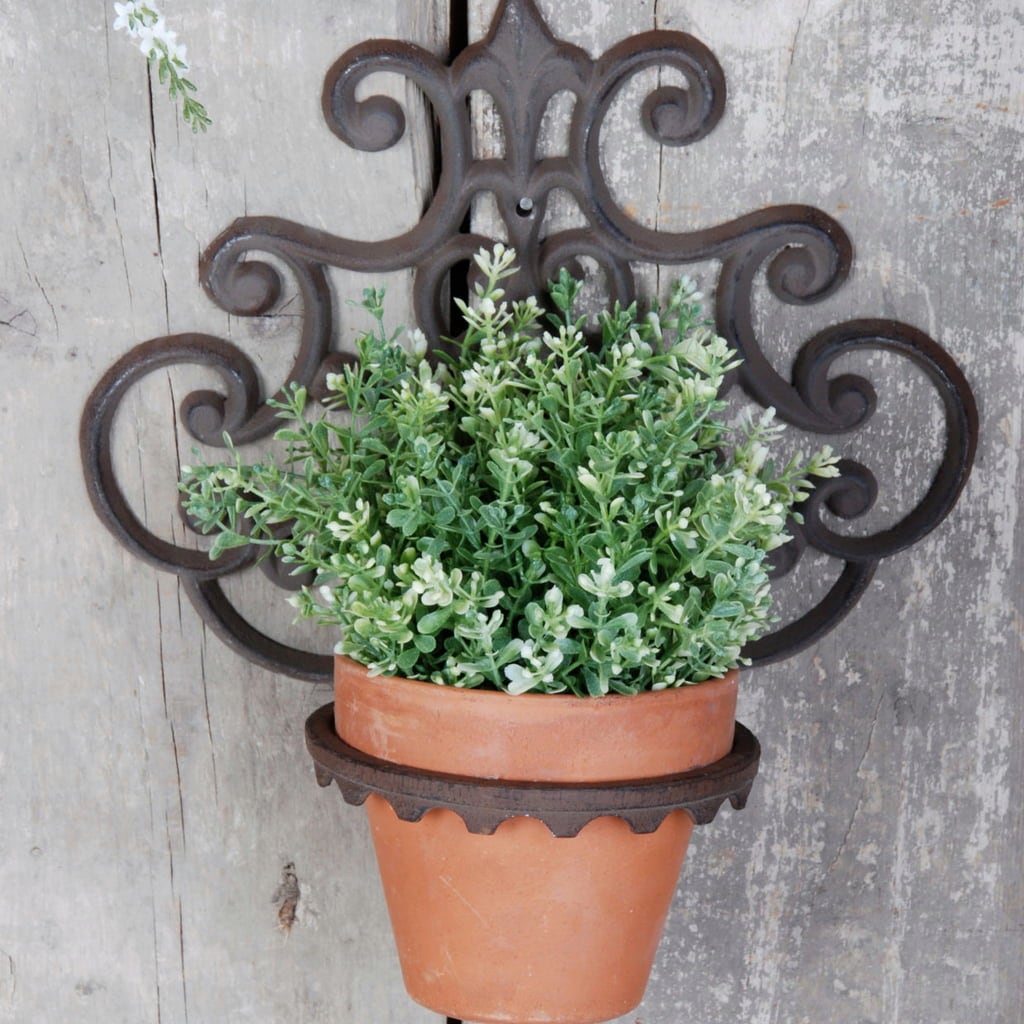 Met de antieke hangende bloempot van robuust gietijzer hang je met weinig moeite en toch een grote visuele meerwaarde je bloempotten aan de muur. De houder is eenvoudig te installeren en geeft kale muren een nieuwe glans door zijn arabesk design.