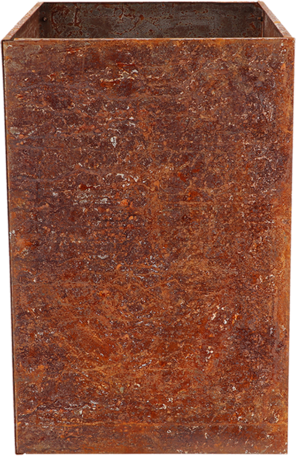 De plantenbak krijgt na verloop van tijd een charmante patina, omdat hij door weer en wind blijft roesten. Hierdoor krijgt het een rustieke en authentieke uitstraling, die een mooi contrast vormt met de natuurlijke omgeving.