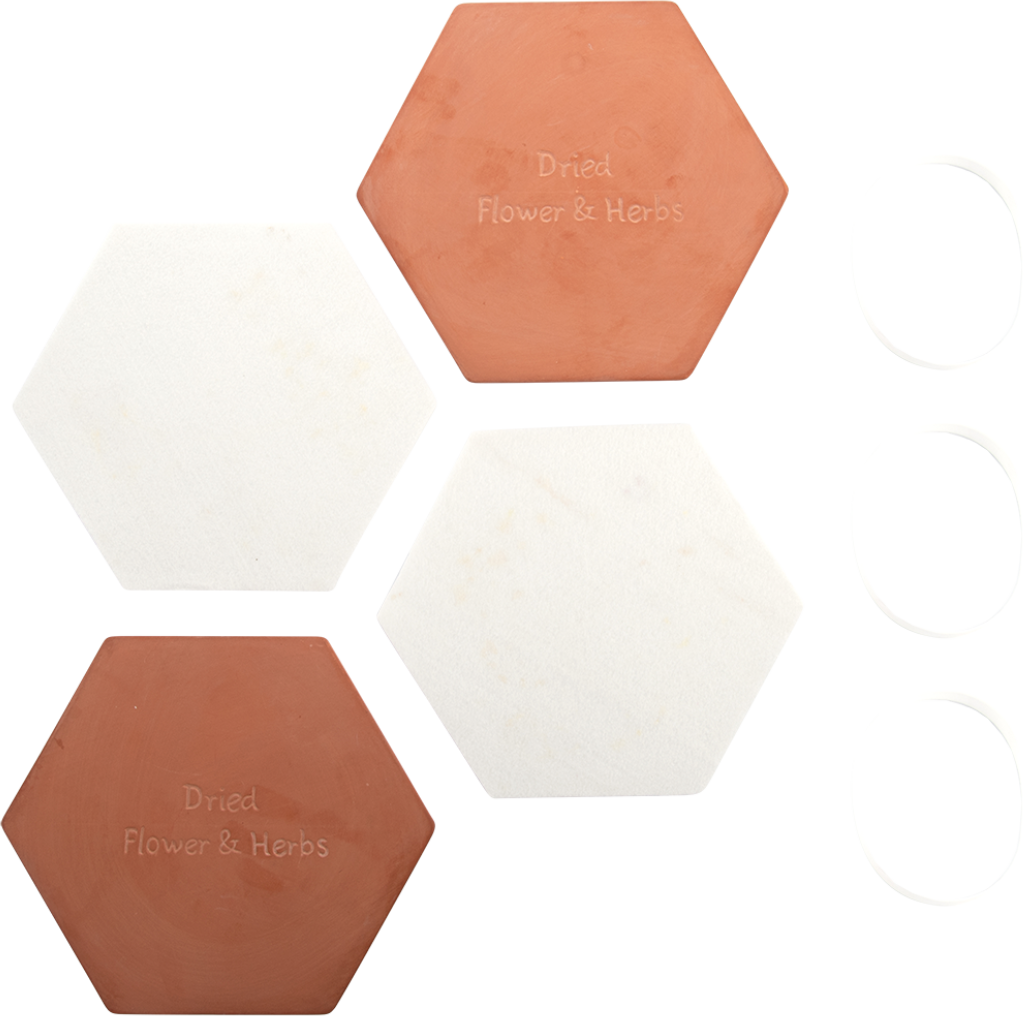 | Materiaal | Terracotta, vilt, siliconen |