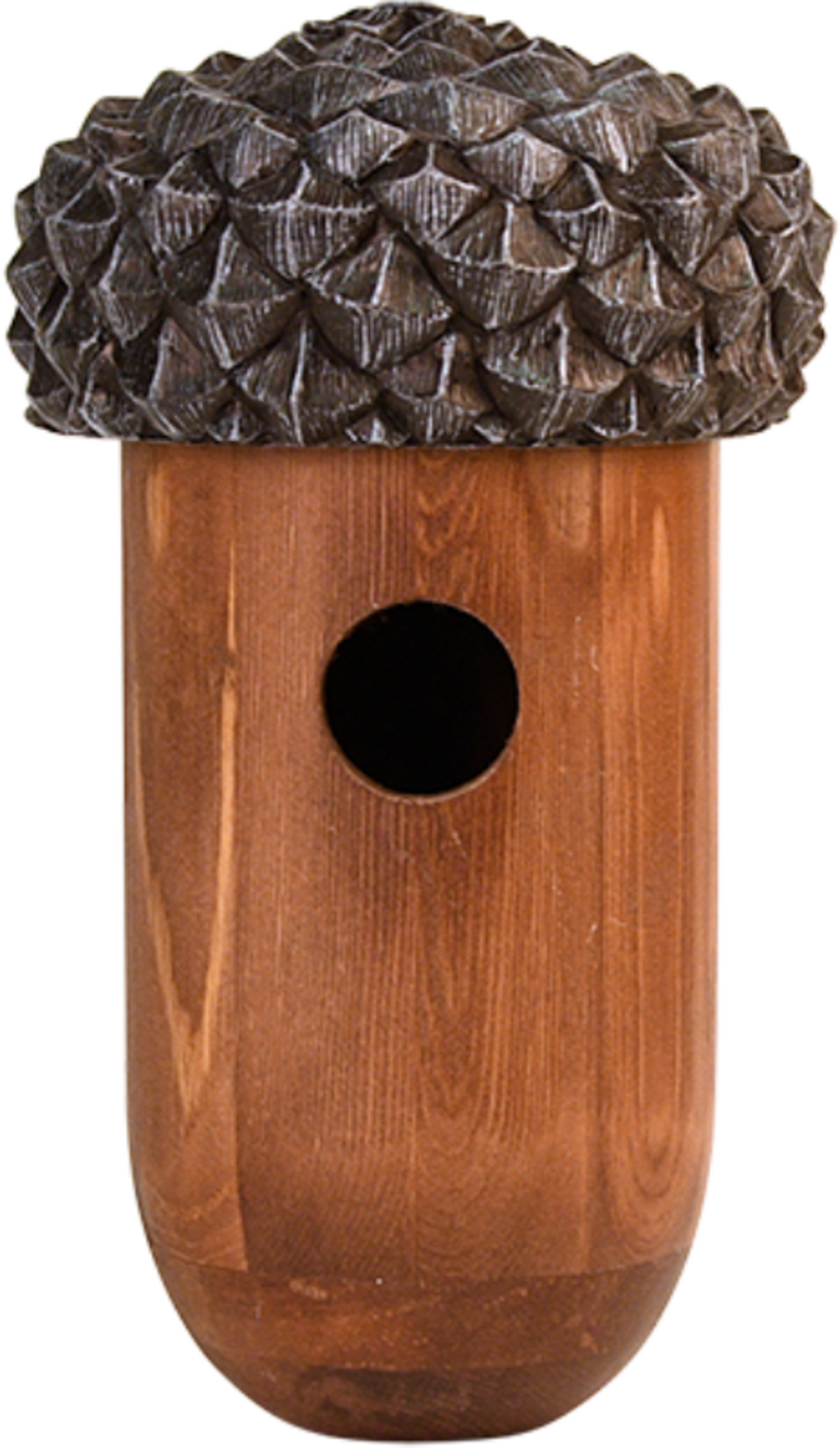 Deze charmante nestkast is vooral populair bij winterkoninkjes en maakt indruk met zijn mooie eikeldesign. Ideaal om de populatie van deze vogelsoort in de regio te vergroten. In de winter wordt dit prachtige huis ook vaak gebruikt als schuilplaats.