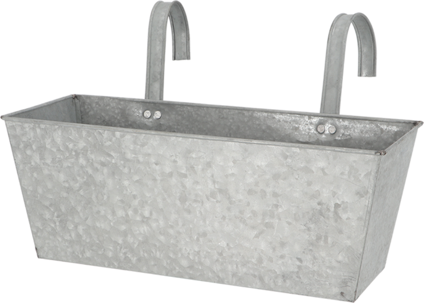 Balkonkast van zinkplaat met verouderde zinkafwerking en 2 haken.