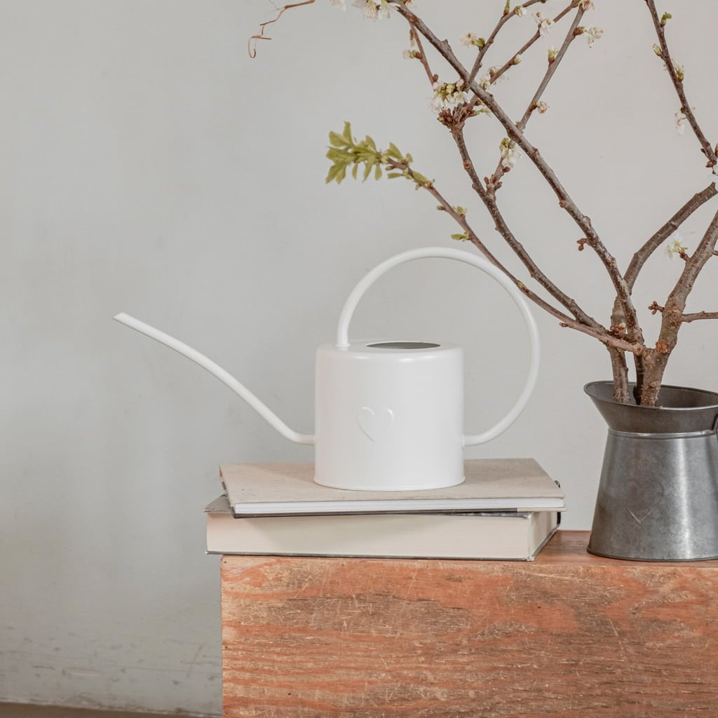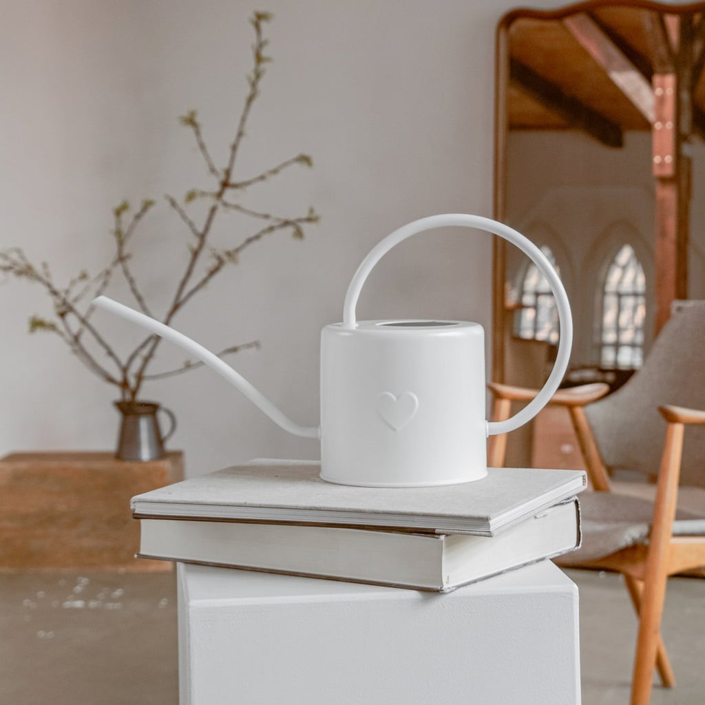Esthetische metalen gieter met een klein hartje als mooi accent. De smalle, langwerpige tuit voorziet je planten van een gerichte watertoevoer. Het gebogen handvat, dat het ontwerp compleet maakt, is niet alleen perfect gevormd maar ook handig.