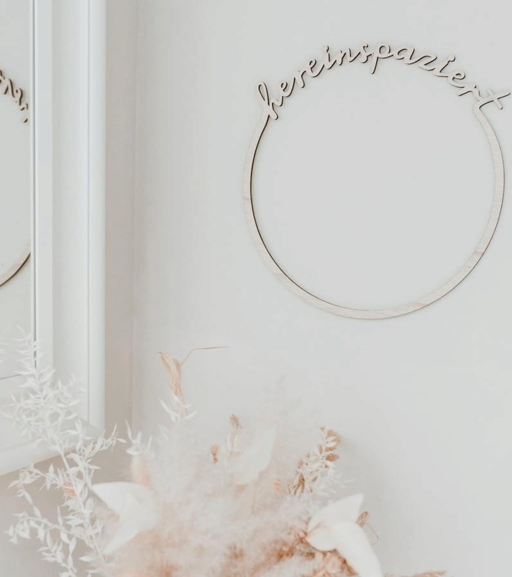 Deze prachtig bewerkte houten krans zorgt voor een warm welkom voor gasten in de hal en garderobe. Het eenvoudige en tijdloze ontwerp harmonieert prachtig met elke inrichtingsstijl en nodigt uit tot individuele decoratie met gedroogde bloemen en dergelijke. Geweldig als cadeau voor een housewarming.