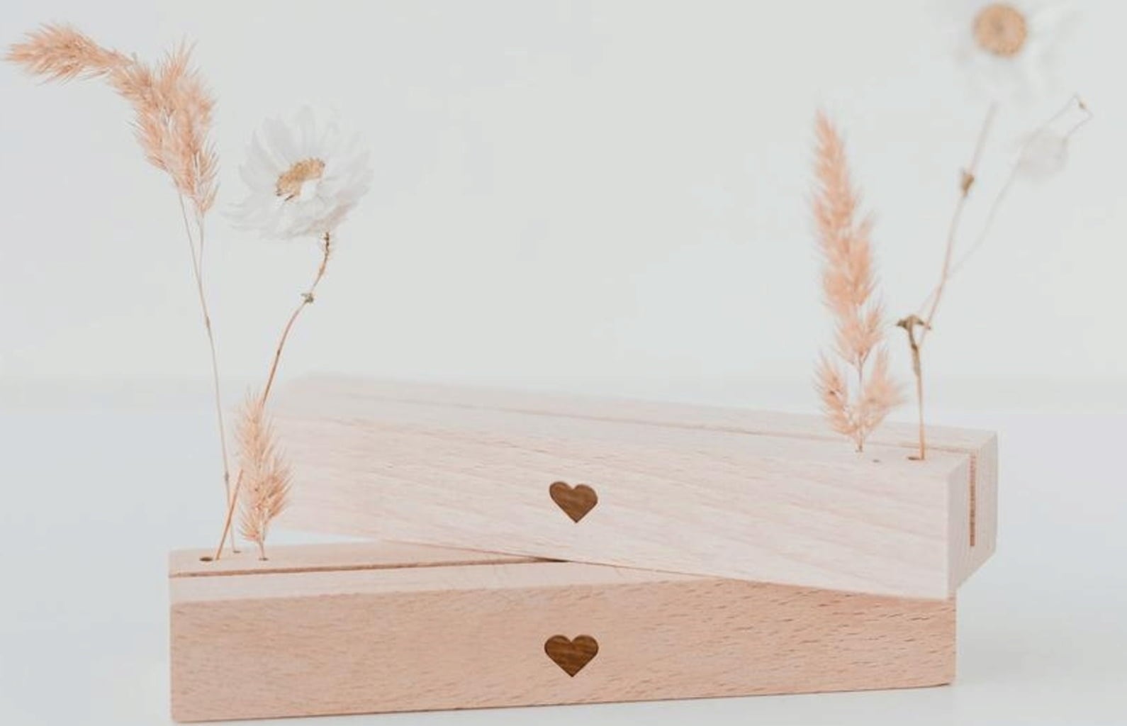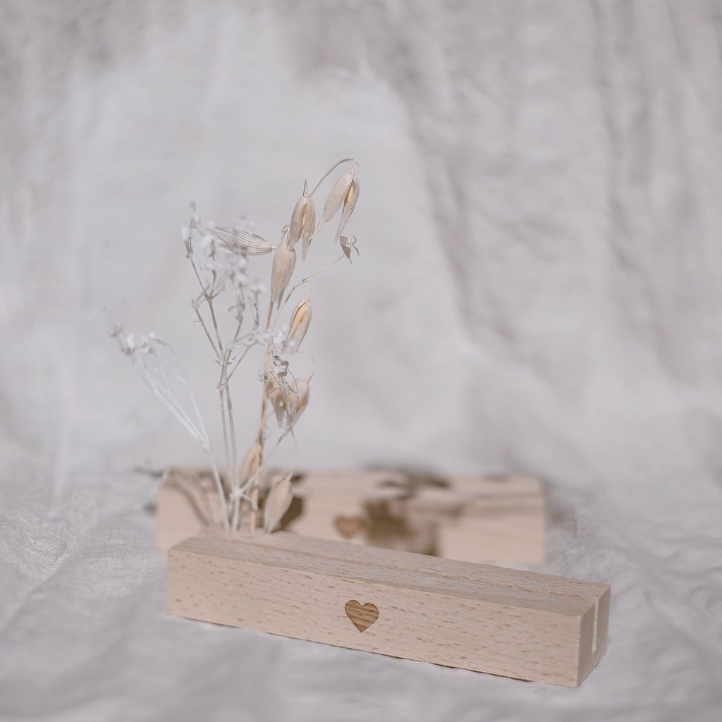 Deze prachtige kaart- en droogbloemenstandaard van hoogwaardig beukenhout met hartgravure is een geweldige manier om je favoriete items en herinneringen te laten zien. Er is ruimte voor foto's, prentbriefkaarten en fijne droogbloemen. Je favoriete stukken kunnen steeds opnieuw worden gerangschikt, aangevuld of uitgewisseld. Er zijn geen grenzen aan je eigen creativiteit.