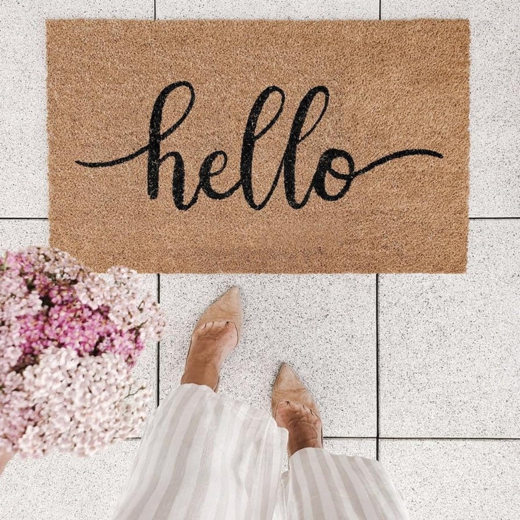 Zowel bewoners als gasten voelen zich thuis met deze vriendelijke "Hello" deurmat! Deze mat met liefdevol ontworpen letters is gemaakt van hoogwaardige kokosvezel en heeft een elegante en natuurlijke uitstraling, waardoor het de perfecte keuze is voor elke entree of garderobe. Het is ook een geweldig cadeau-idee voor housewarmings.