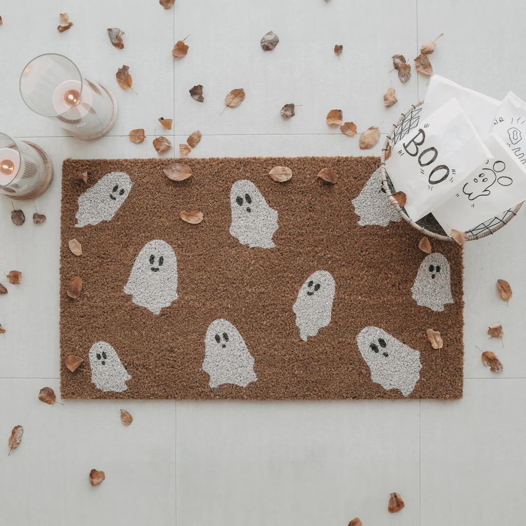 Deze deurmat met schattige spookjes is gemaakt van hoogwaardige kokosvezels en brengt een vleugje griezeligheid in je huis - een charmant accessoire voor het herfstseizoen. De natuurlijke uitstraling maakt deze prachtige deurmat de perfecte keuze voor elke entree of garderobe.