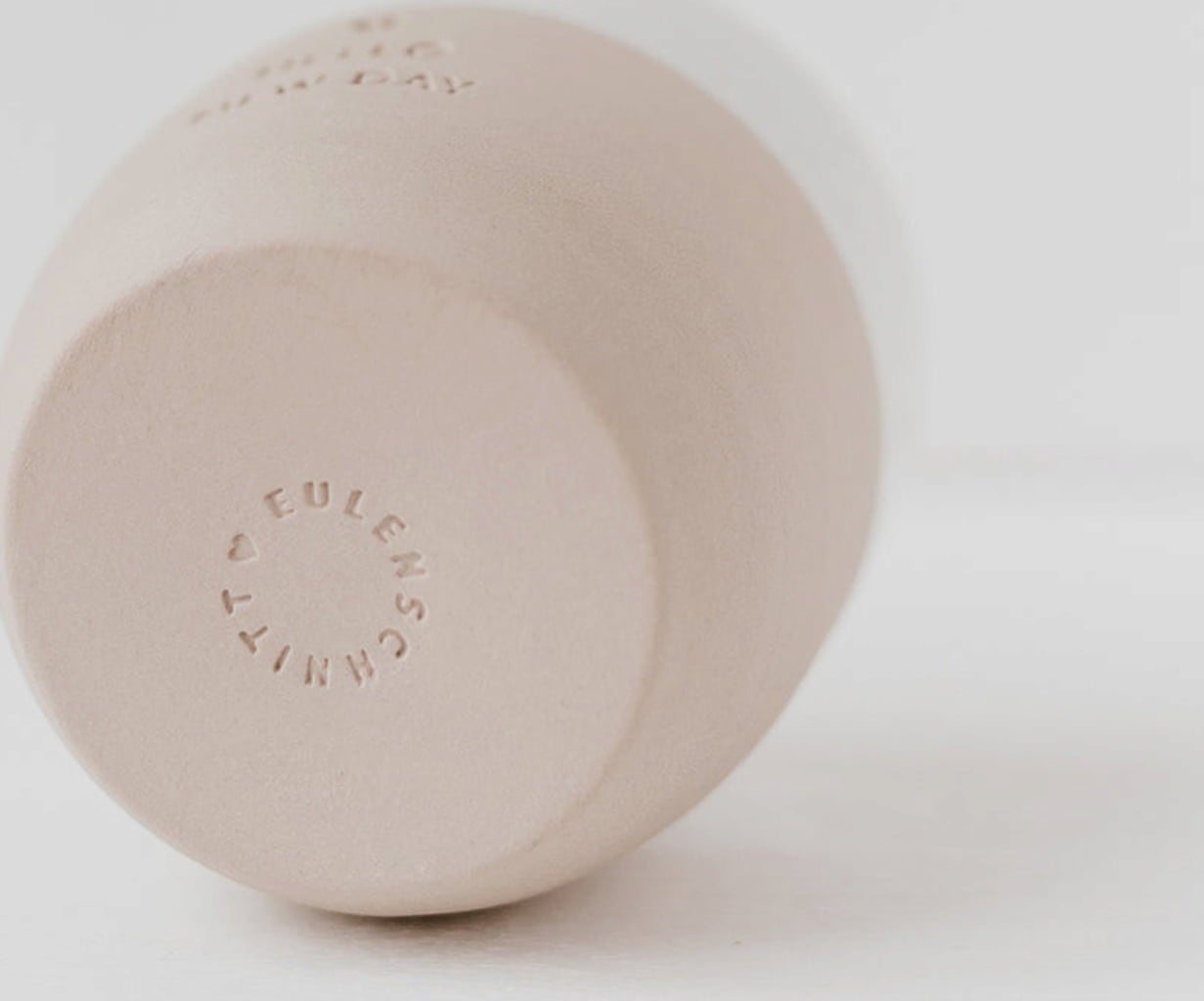 Liefdevol ontworpen in Hamburg, zorgvuldig gevormd, geglazuurd en gebakken in Portugal, zal deze XL-volume mok je iedere ochtend begleiden.