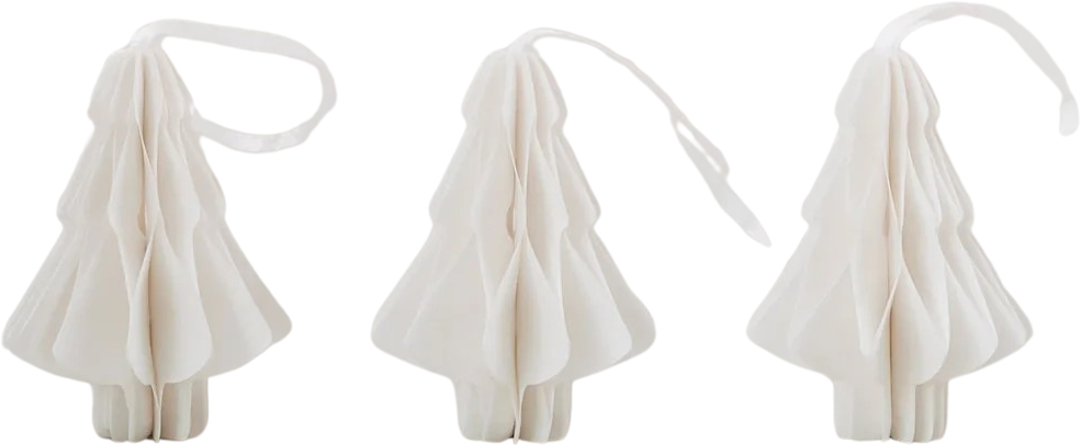 Zet natuurlijke, feestelijke accenten met de set van 3 papieren dennenbomen. De kleine dennenboompjes in honingraatlook versieren kerstbomen, takken, cadeaus of ramen.