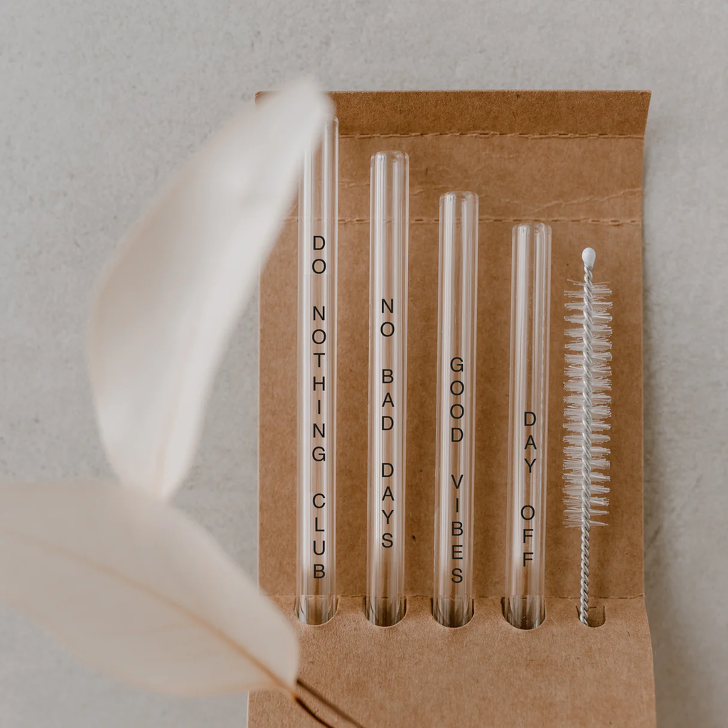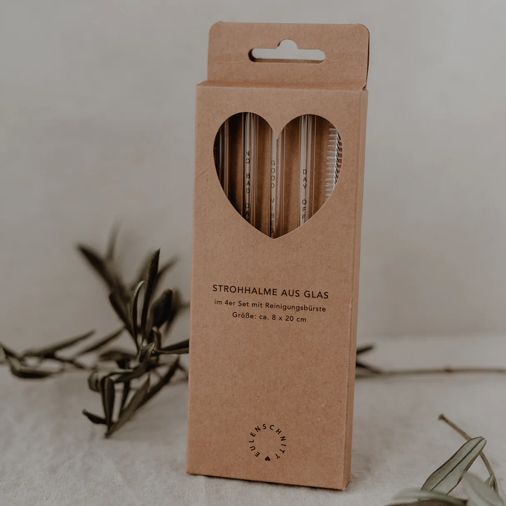 Hittebestendige rietjes van borosilicaatglas met stijlvolle zwarte accenten. De rietjes kunnen in de vaatwasser of met de meegeleverde borstel worden gereinigd.